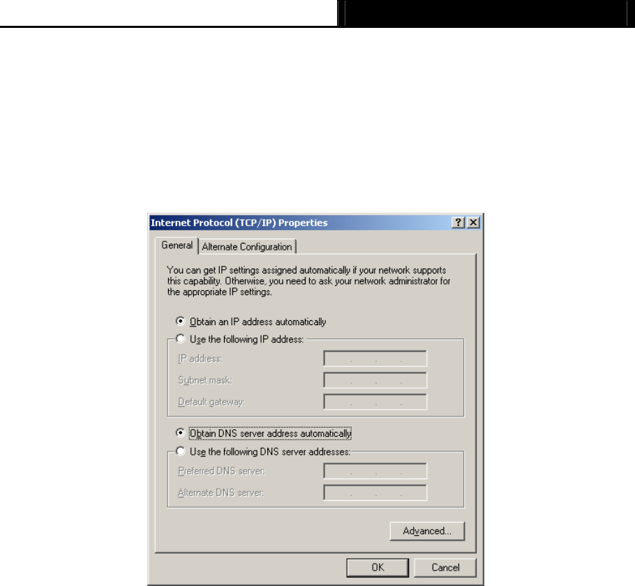 Select Obtain an IP address automatically, Choose Obtain DNS server automatically, as