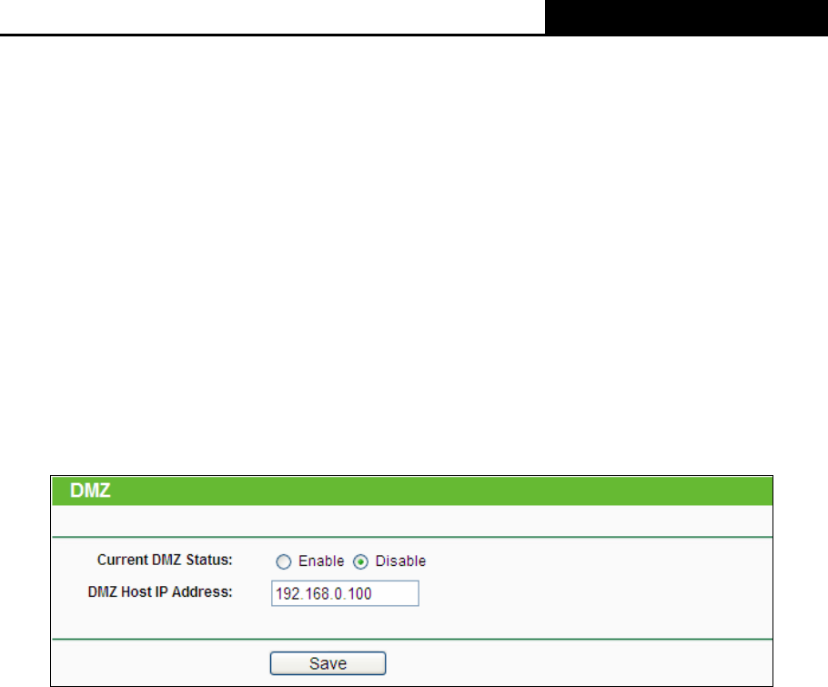 ¾ DMZ (Demilitarized Zone) - A Demilitarized Zone allows one local host to be exposed to the