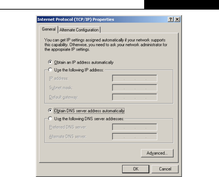 Select Obtain an IP address automatically, Choose Obtain DNS server automatically, as