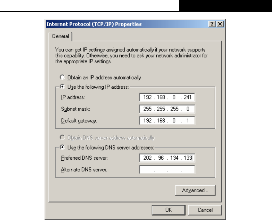 3 Type the Router’s LAN IP address (the default IP is 192.168.0.1) into the Default gateway