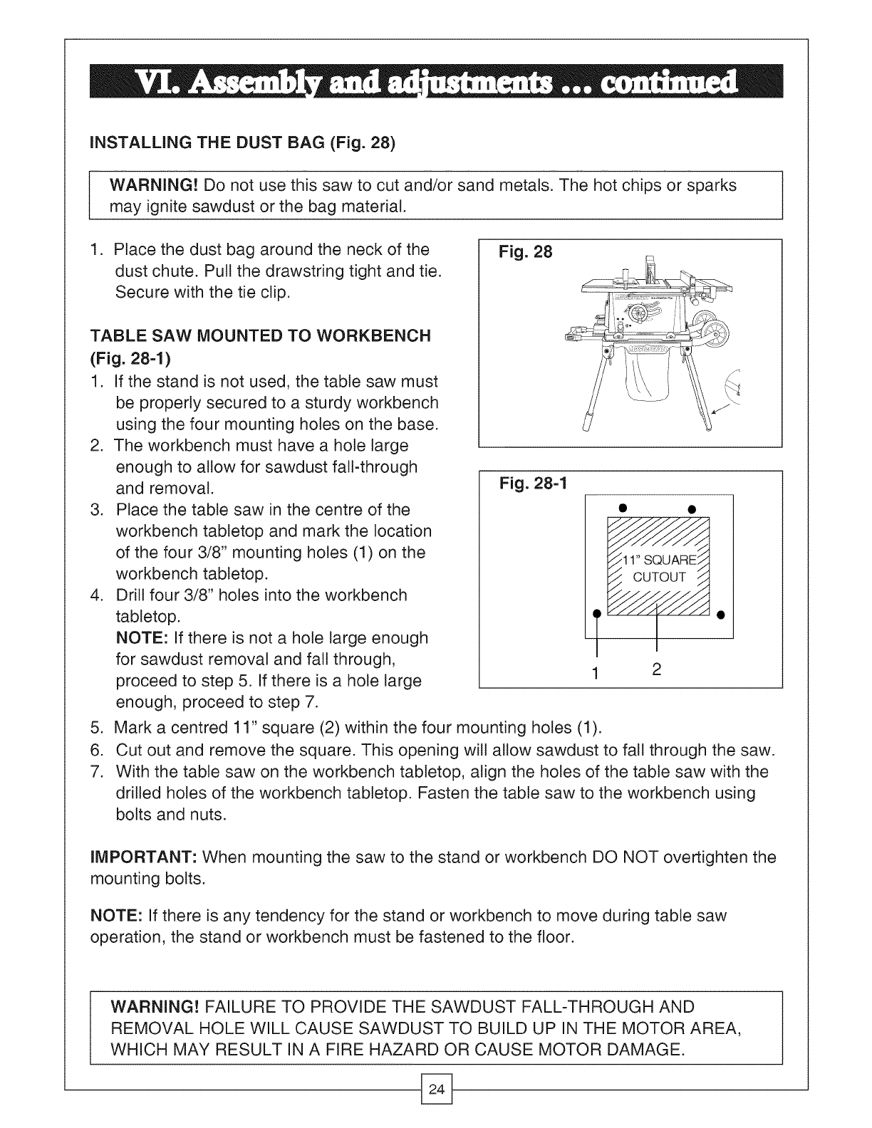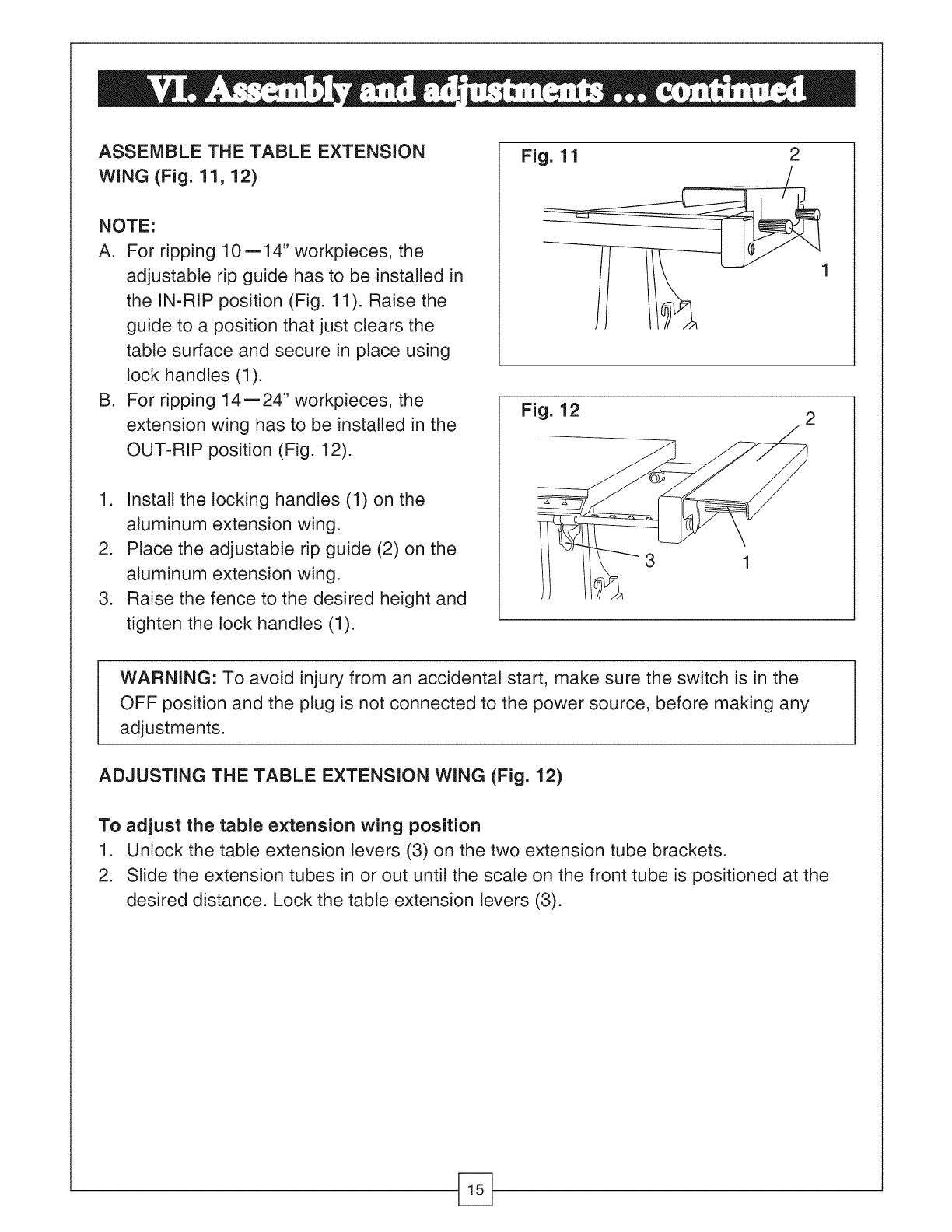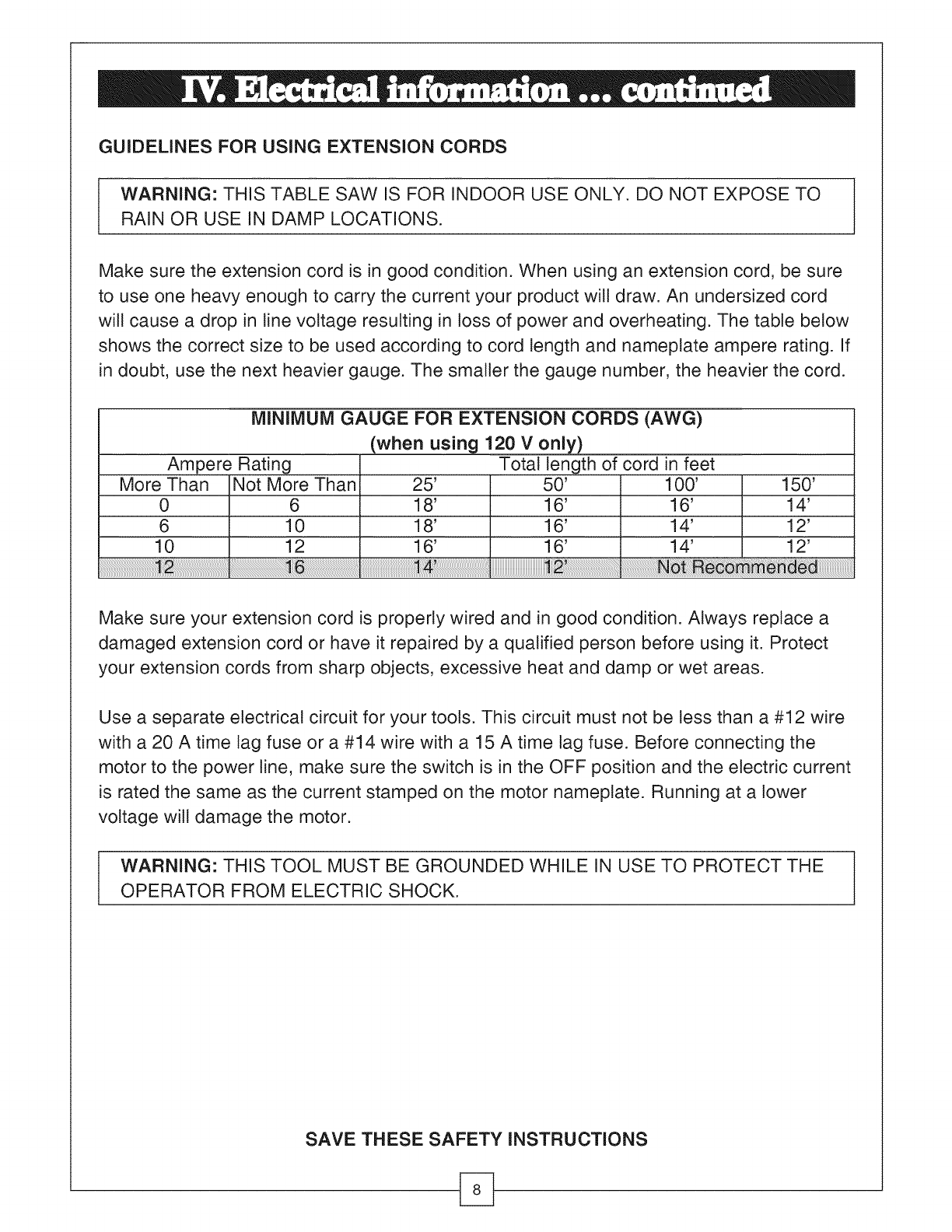 NOT PLUG IN THE TABLE SAW UNTIL THE ENTIRE INSTRUCTION MANUAL HAS