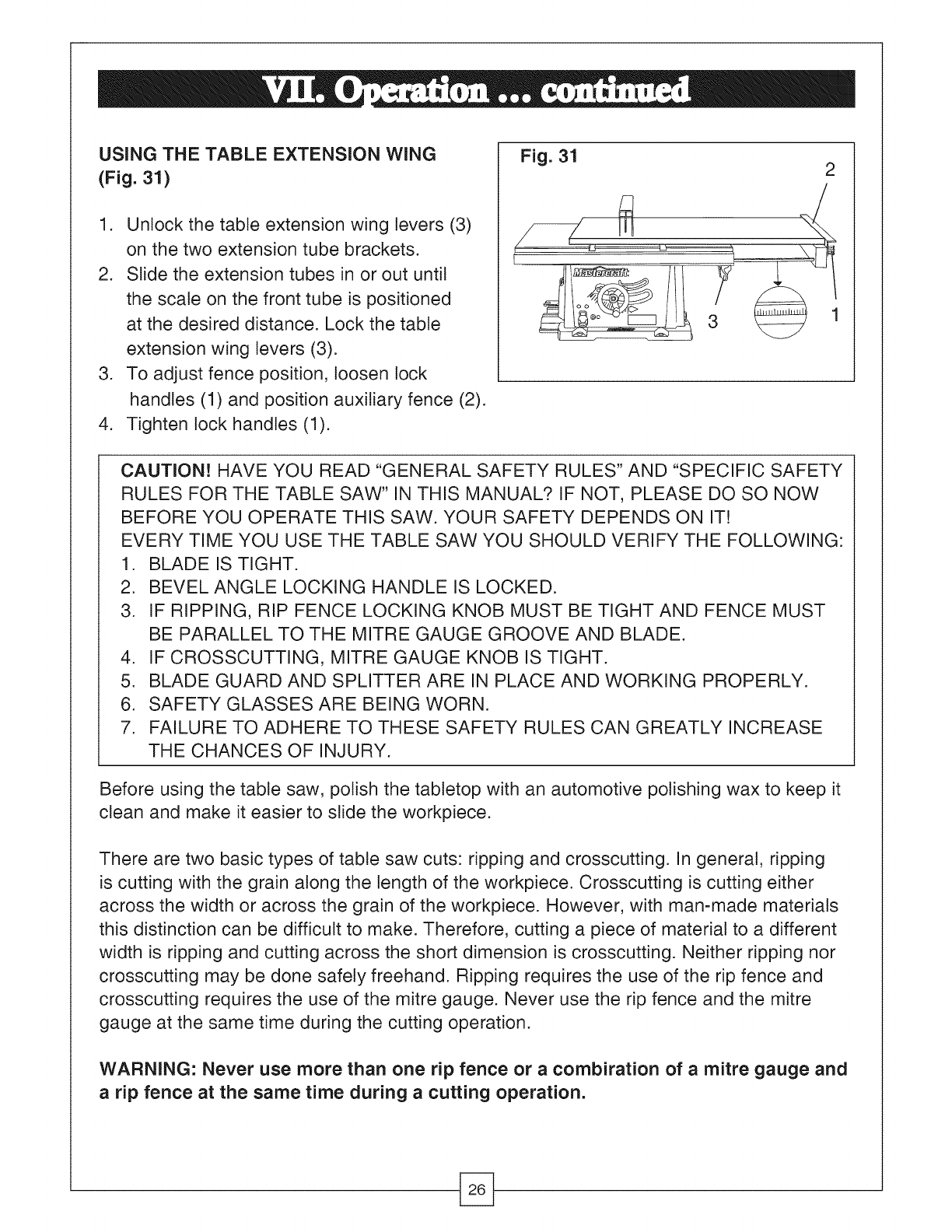 HAZARDOUS TO YOUR HEALTH. ALWAYS OPERATE THE TABLE SAW IN A