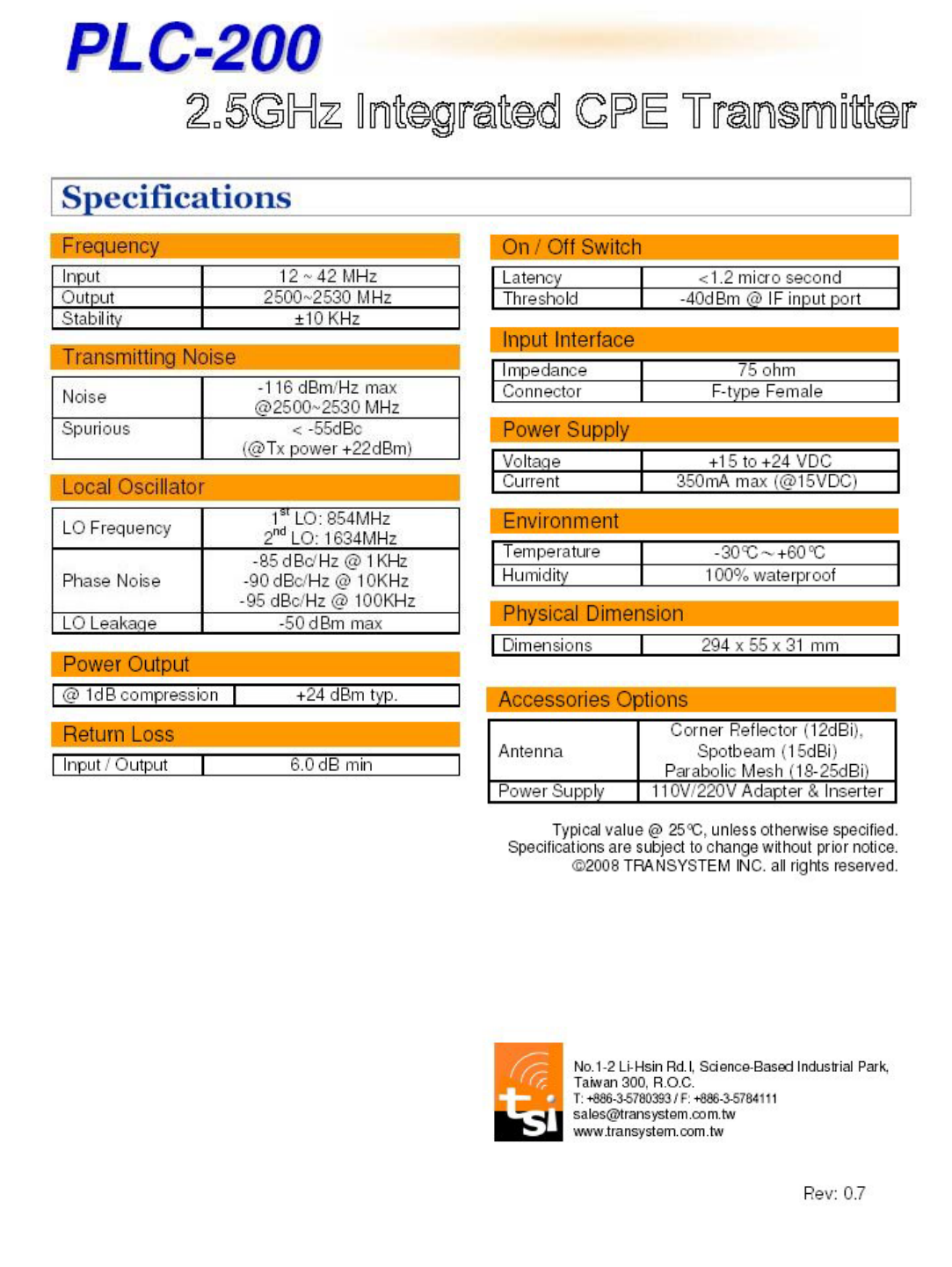 TranSystem 960710101 2.5 GHz Integrated CPE Transmitter User Manual UserMan20081008