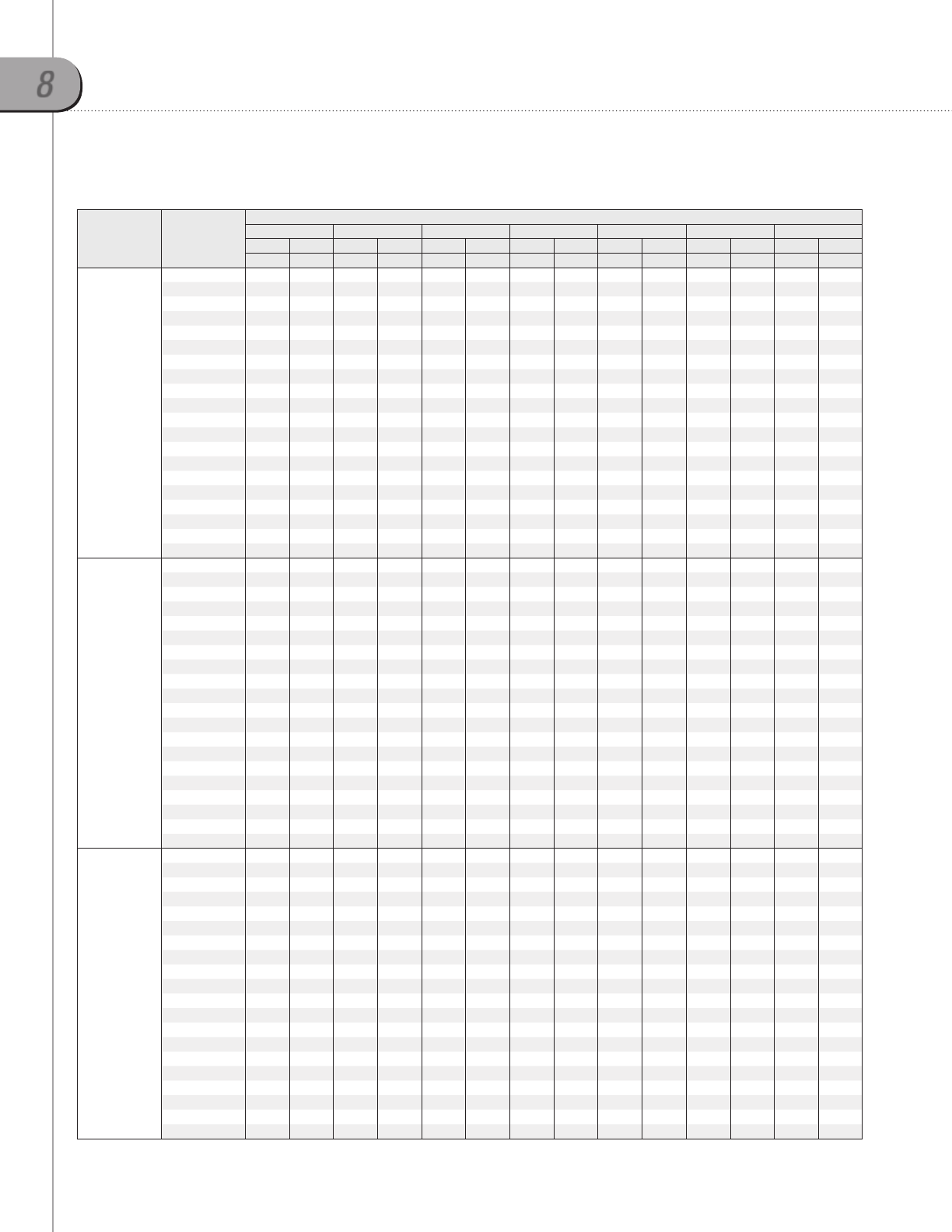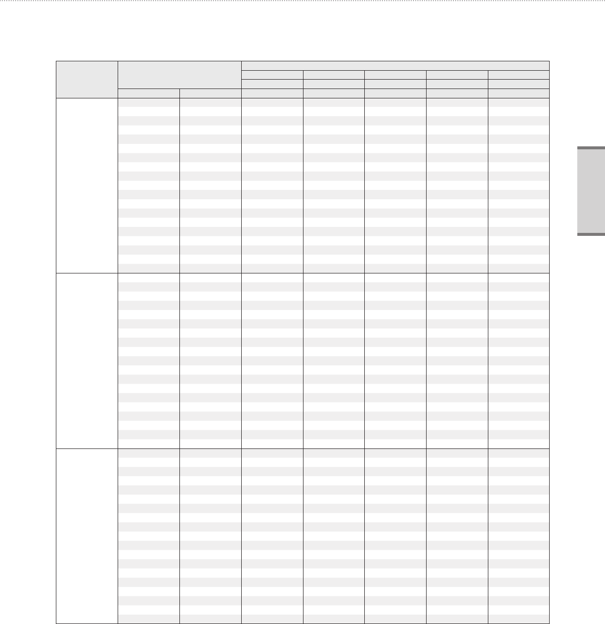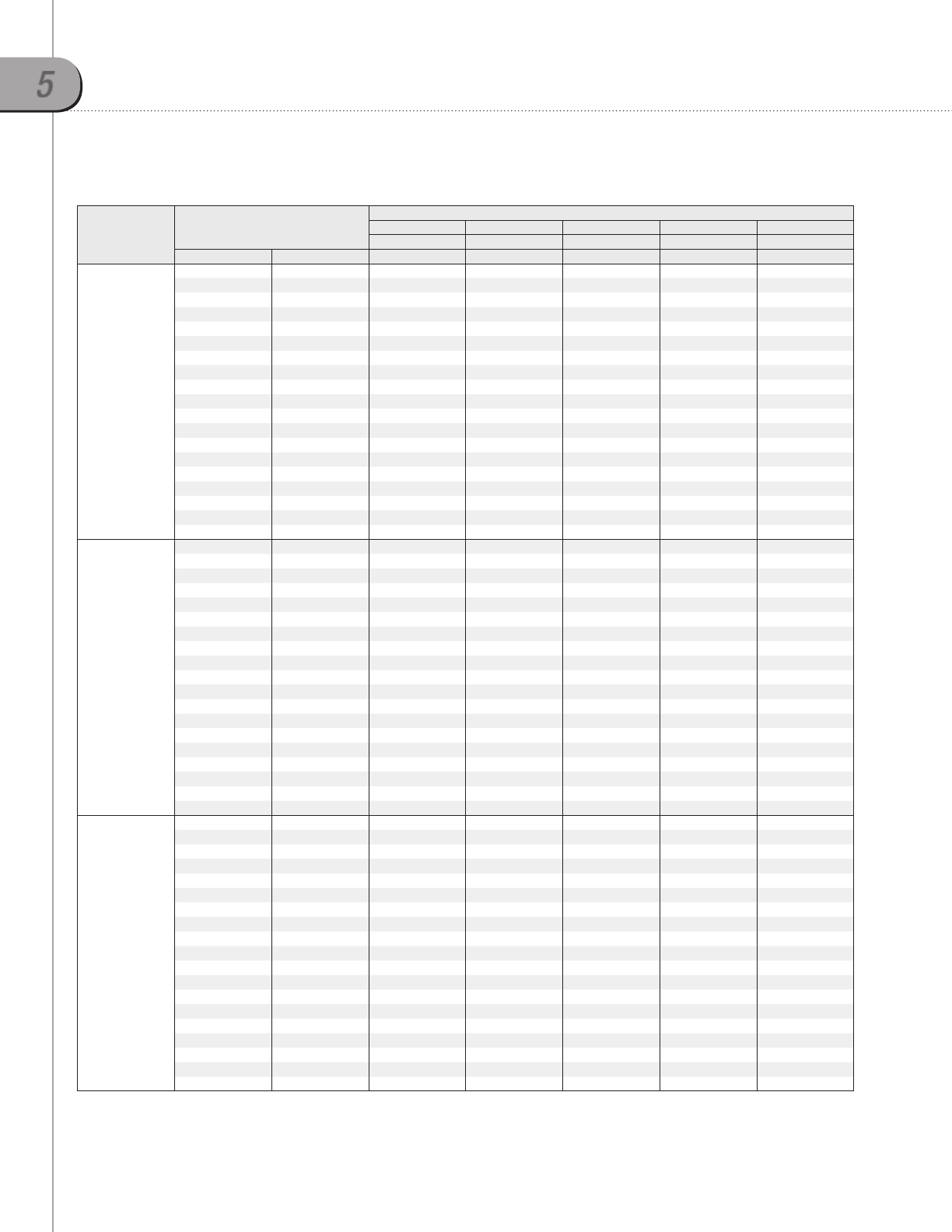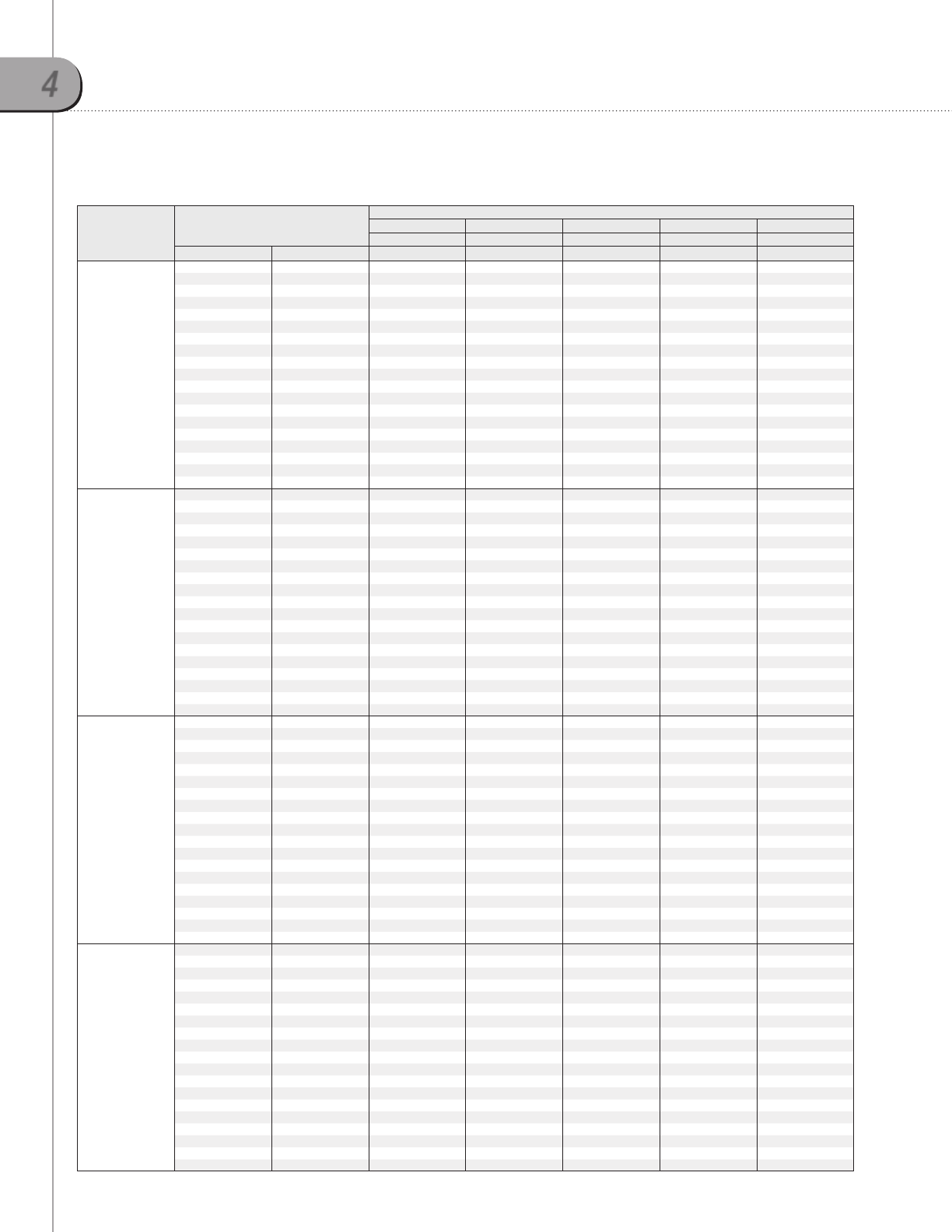 1-1. Capacity tables