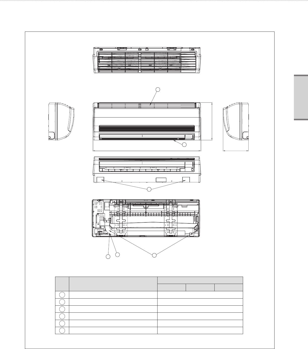 1Liquid pipe connection Ø6.35 (1/4") Flare Ø9.52 (3/8") Flare