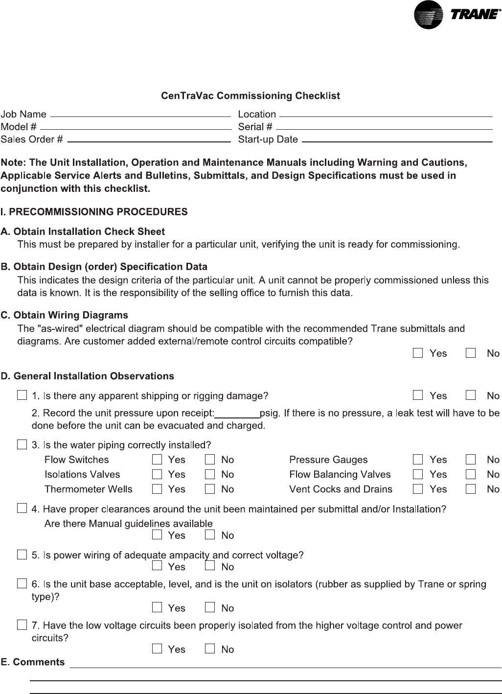 Trane has a policy of continuous product and product data improvement and reserves the right to change design