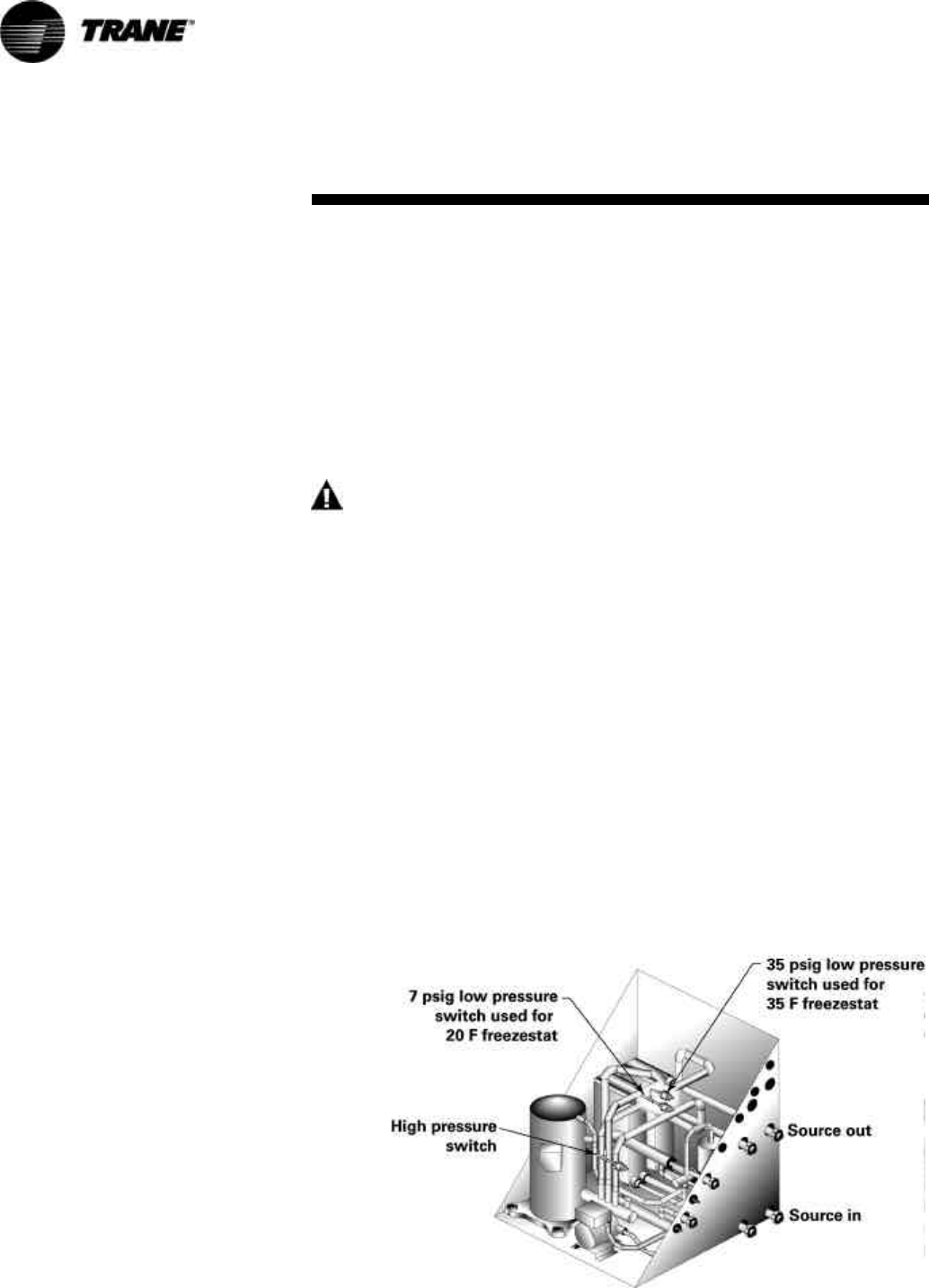 XHeat transfer fluid too cold Replace freezestat. For smaller tonnage