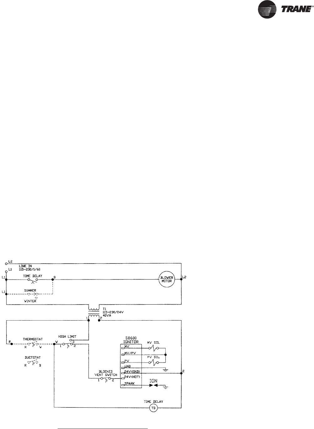 temperature. It also allows the fan to operate after burner shutdown, removing the residual heat