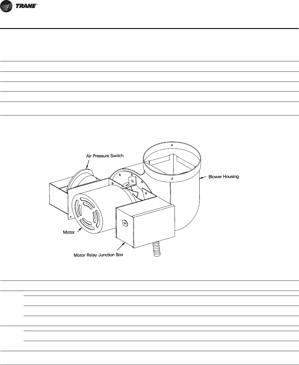 When used with a duct furnace, a sheet metal transition is supplied to connect the blower assembly