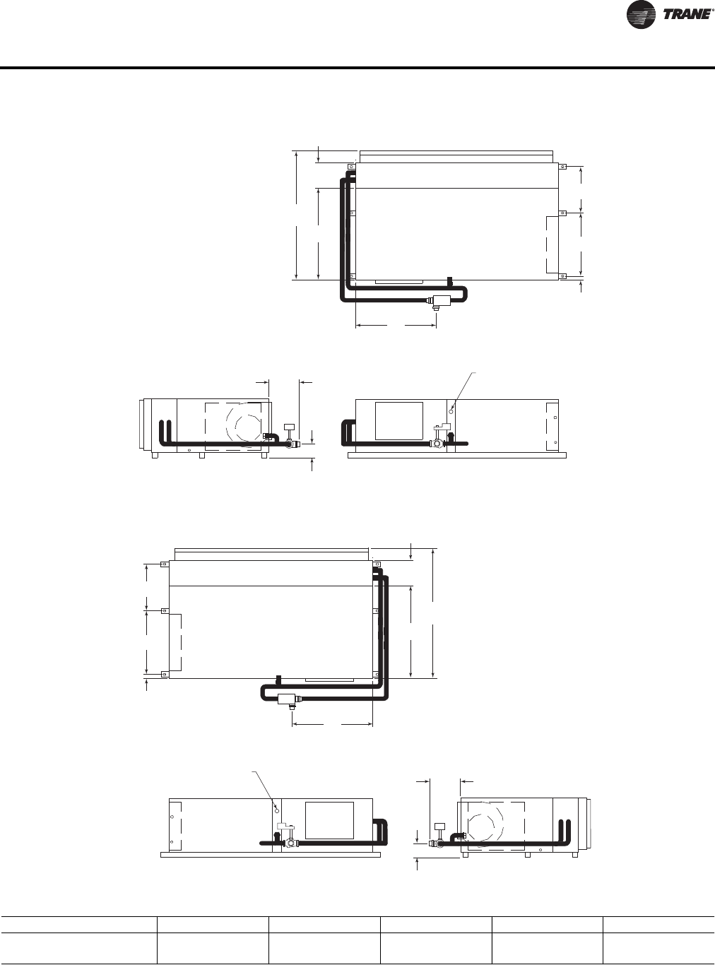 All hydronic coils are of 3/8 in. (6-20 ton units), 1/2 in. (25 ton unit) copper and aluminum plate fin
