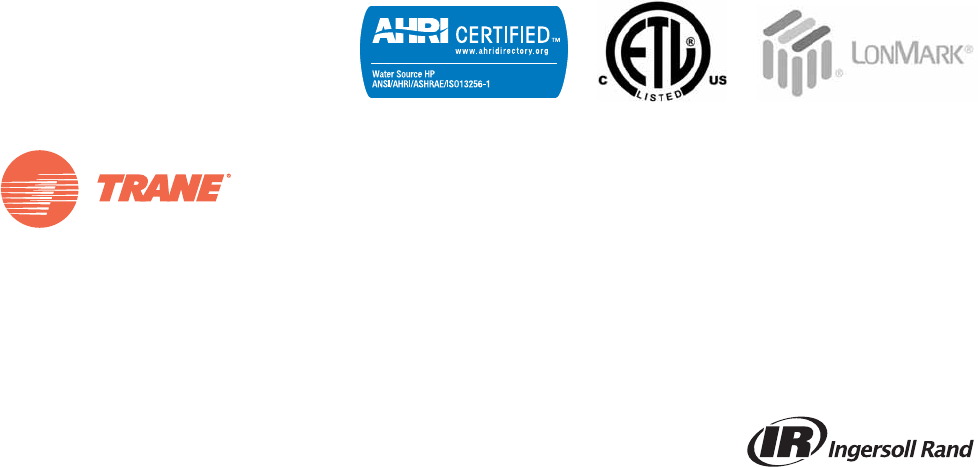 Trane H V Wshp 5 To 25 Tons Catalogue Water Source Heat Pump Axiom Horizontal/Vertical GEH/GEV 6 60 Hz PRC016E EN August 2014