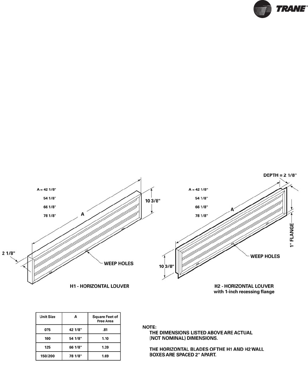 Figure 70. Horizontal louver wallbox (H1 and H2) dimensions