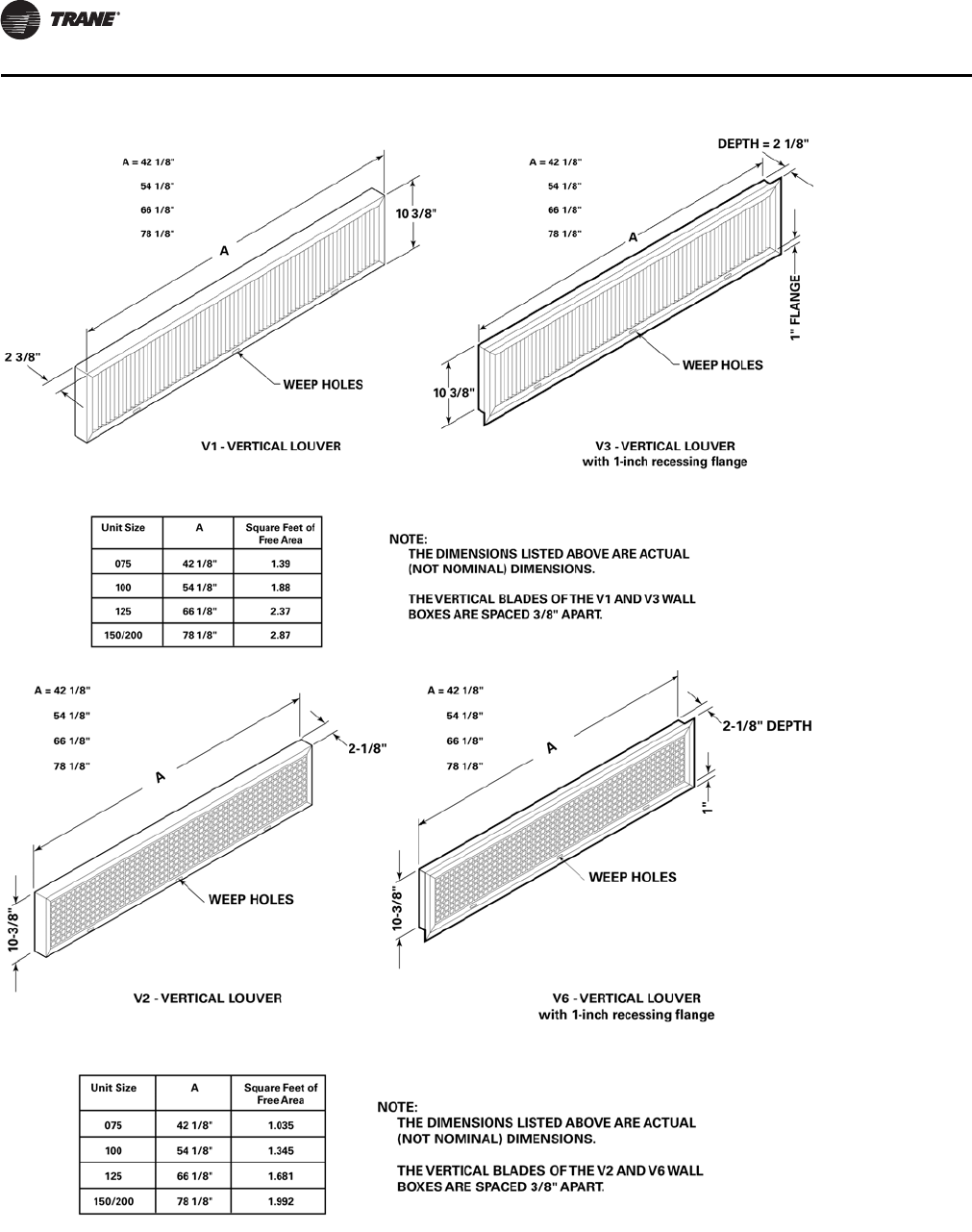 Figure 71. Vertical louver wallbox (V1, V3, V2, and V6) dimensions