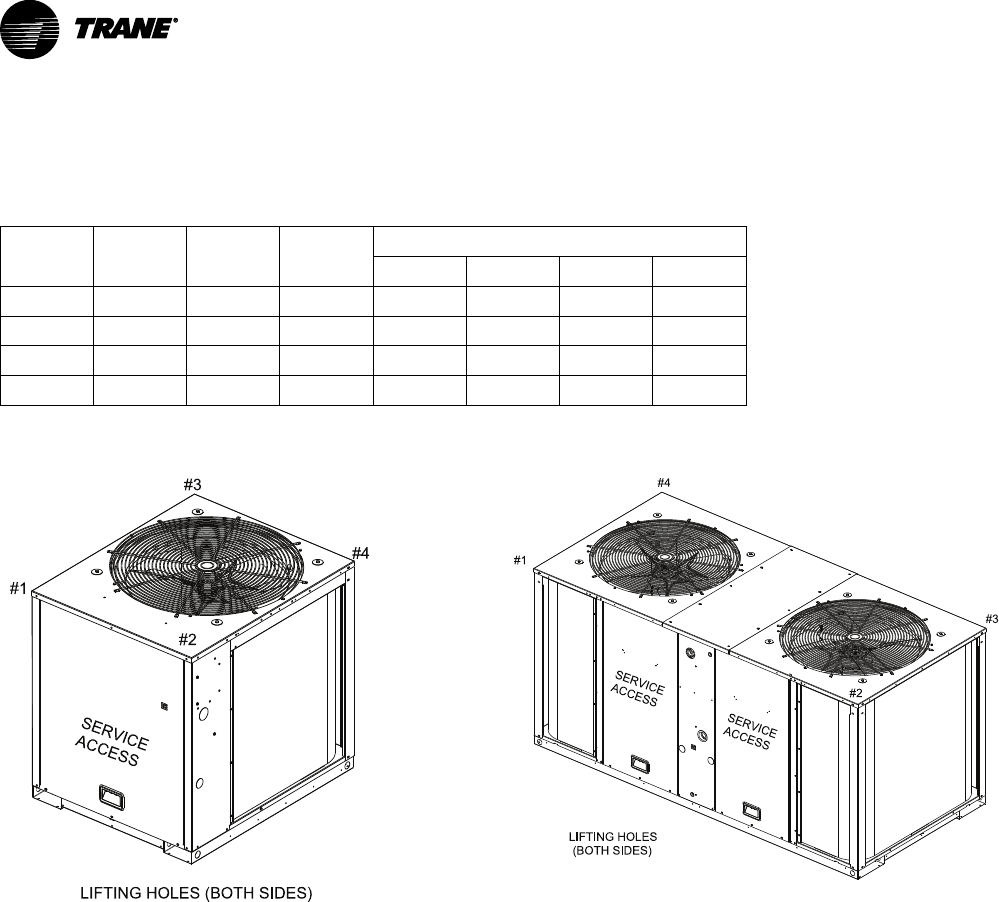 Table 9. TWA unit and corner weights — lbs (60 Hz)