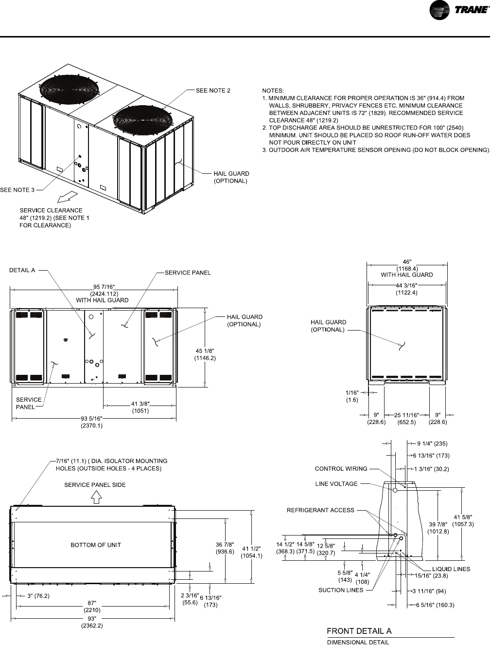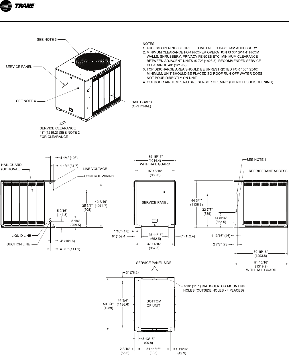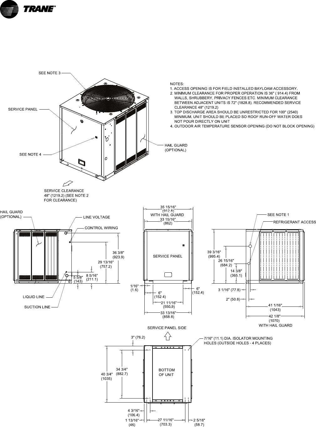 1. MINIMUM CLEARANCE FOR PROPER OPERATION IS 36" (914.4) FROM