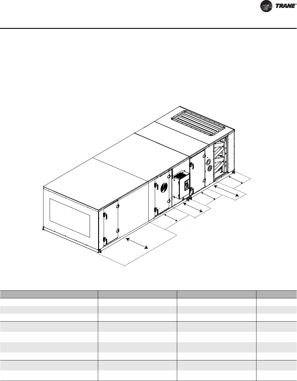 must be provided on all sides of unit for removal of access panels, plug panels, or section-to-section attachment brackets. Clearance for starters, VFDs,