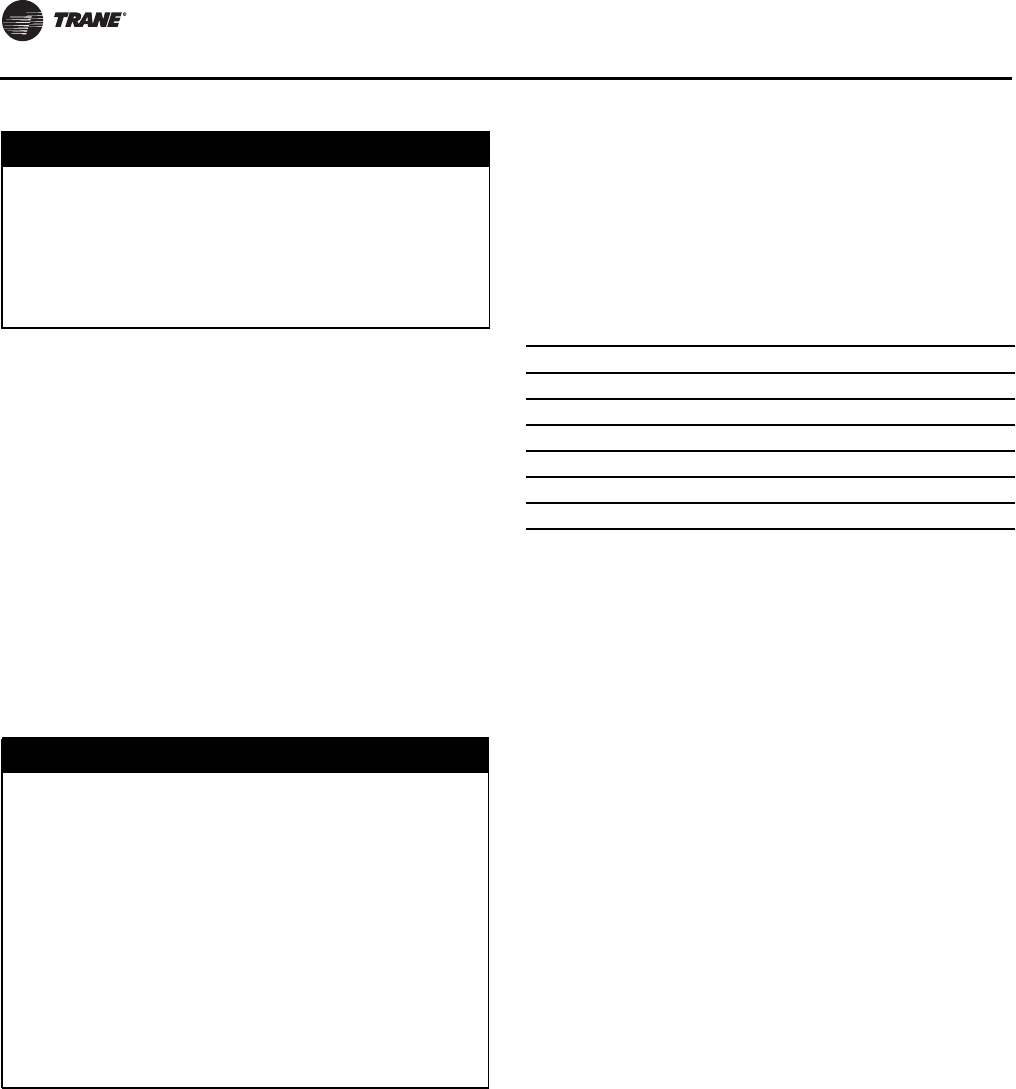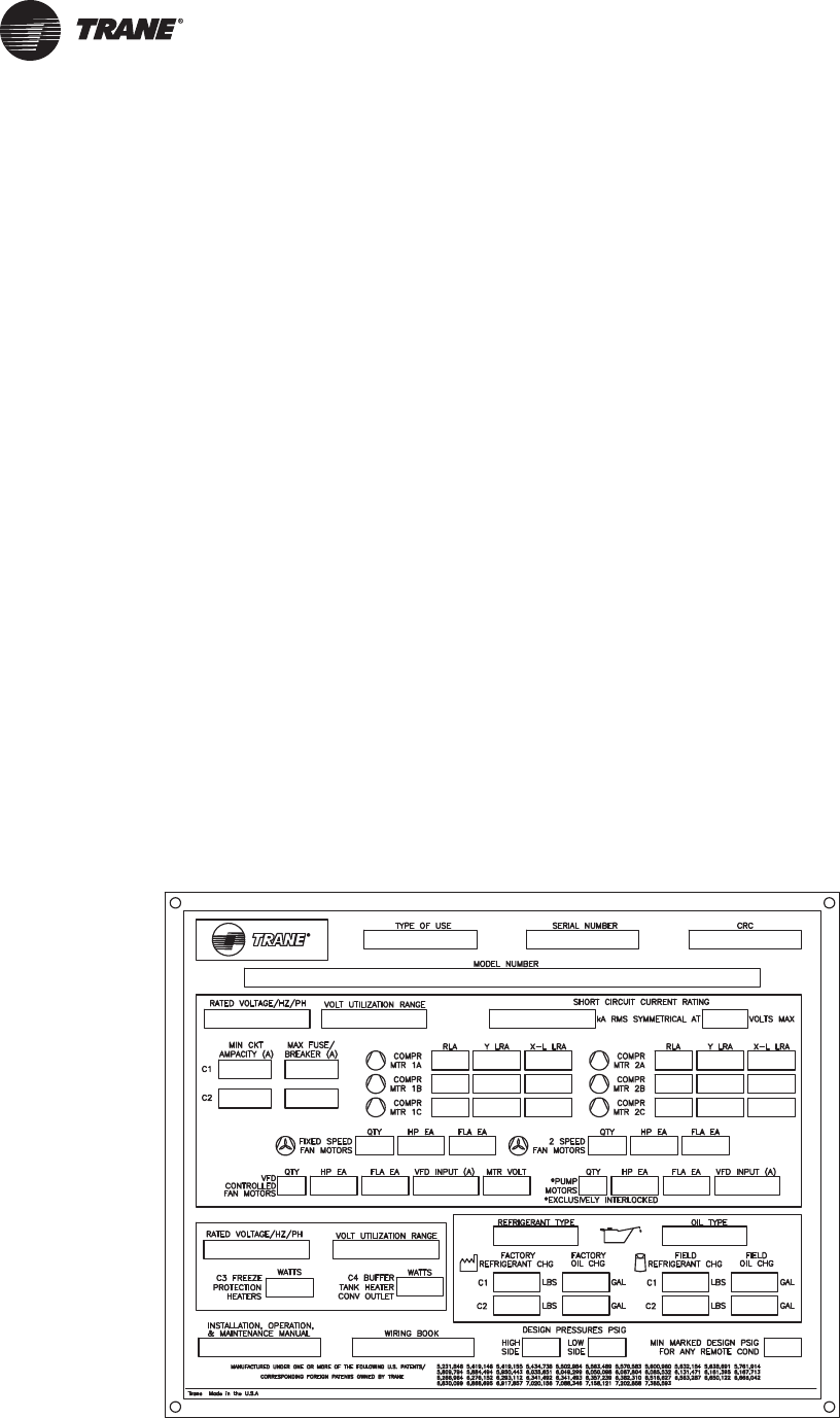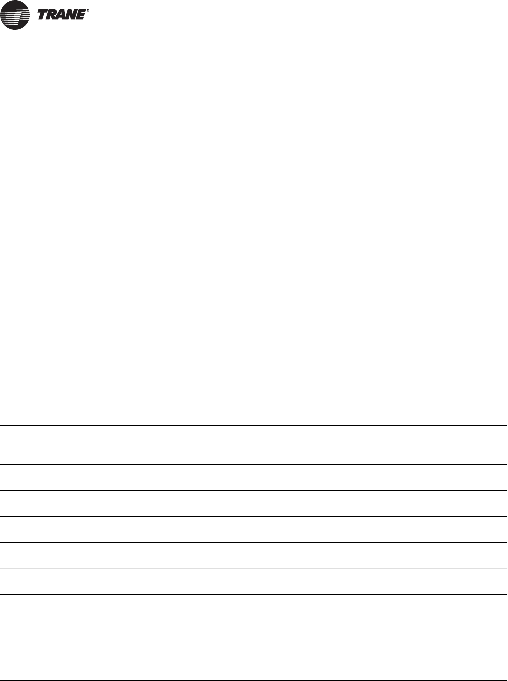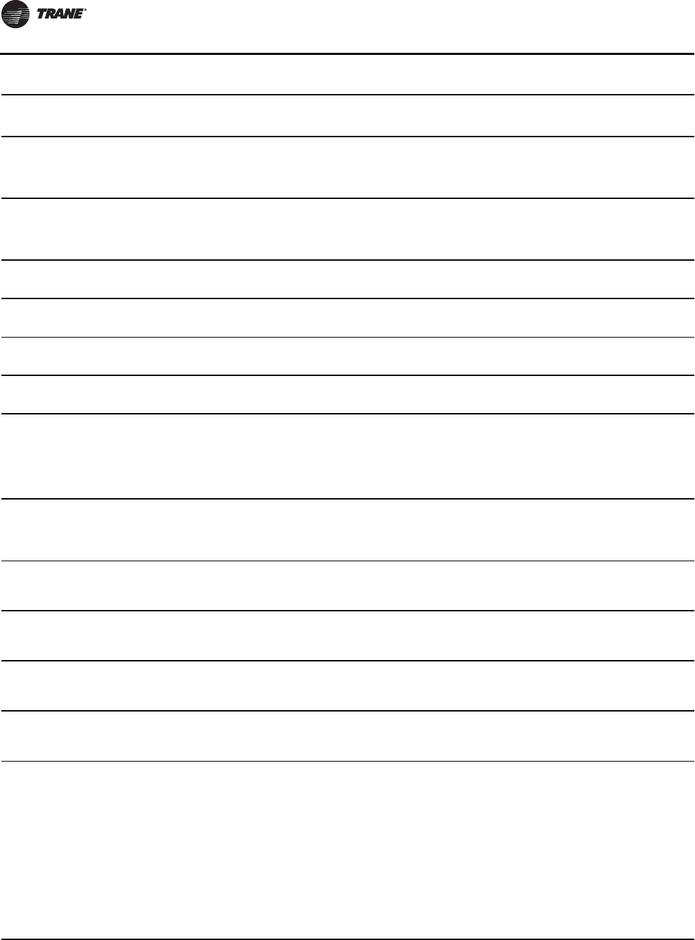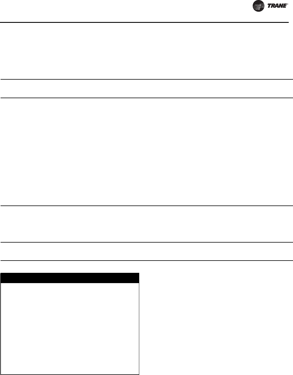 Note: A copy of this completed from must be submitted to theTrane Service Office that will be responsible for start-up of chiller.
