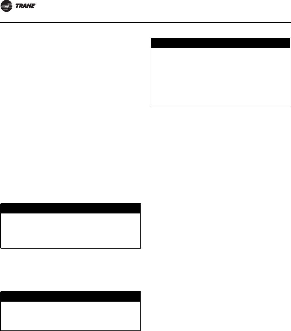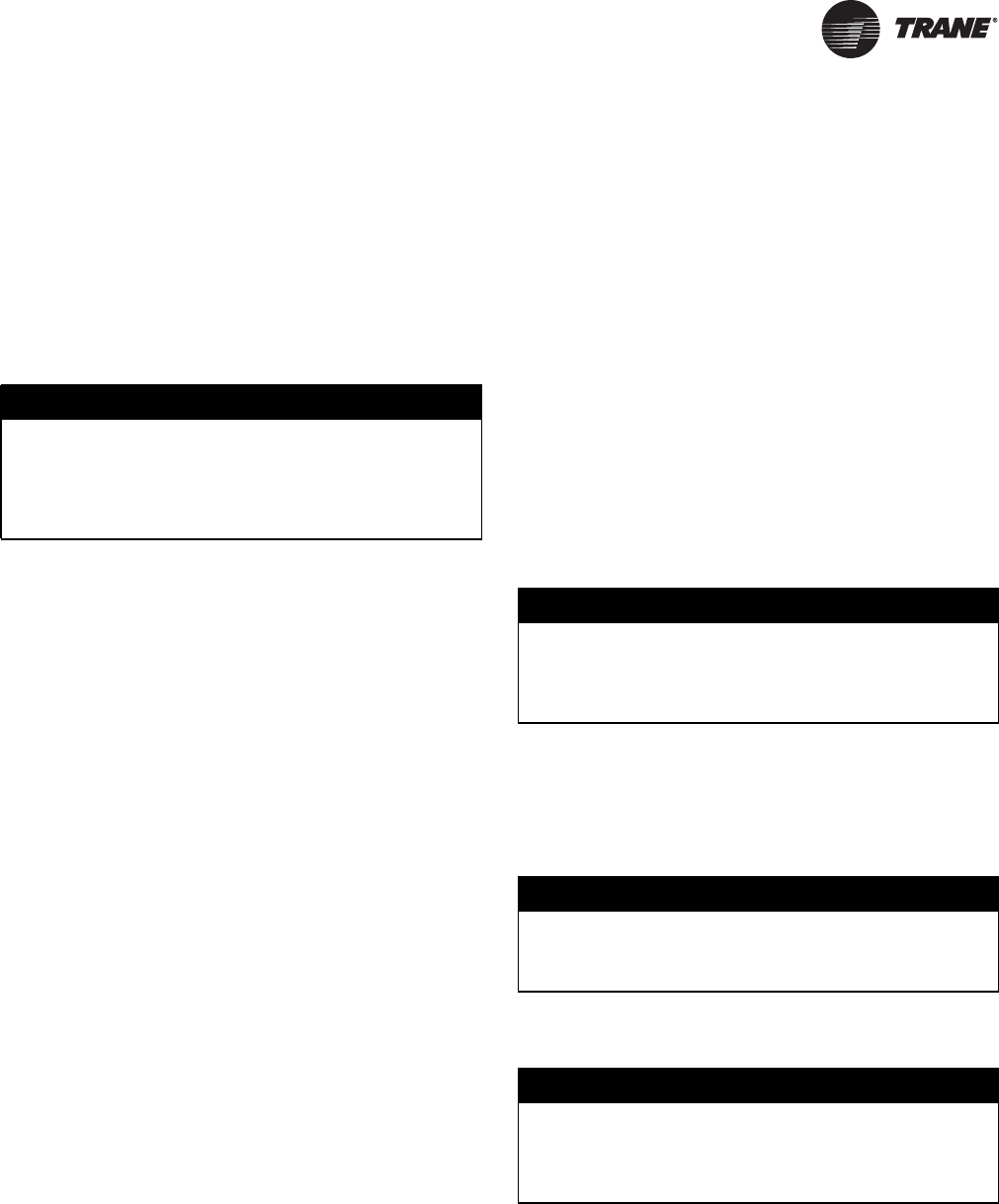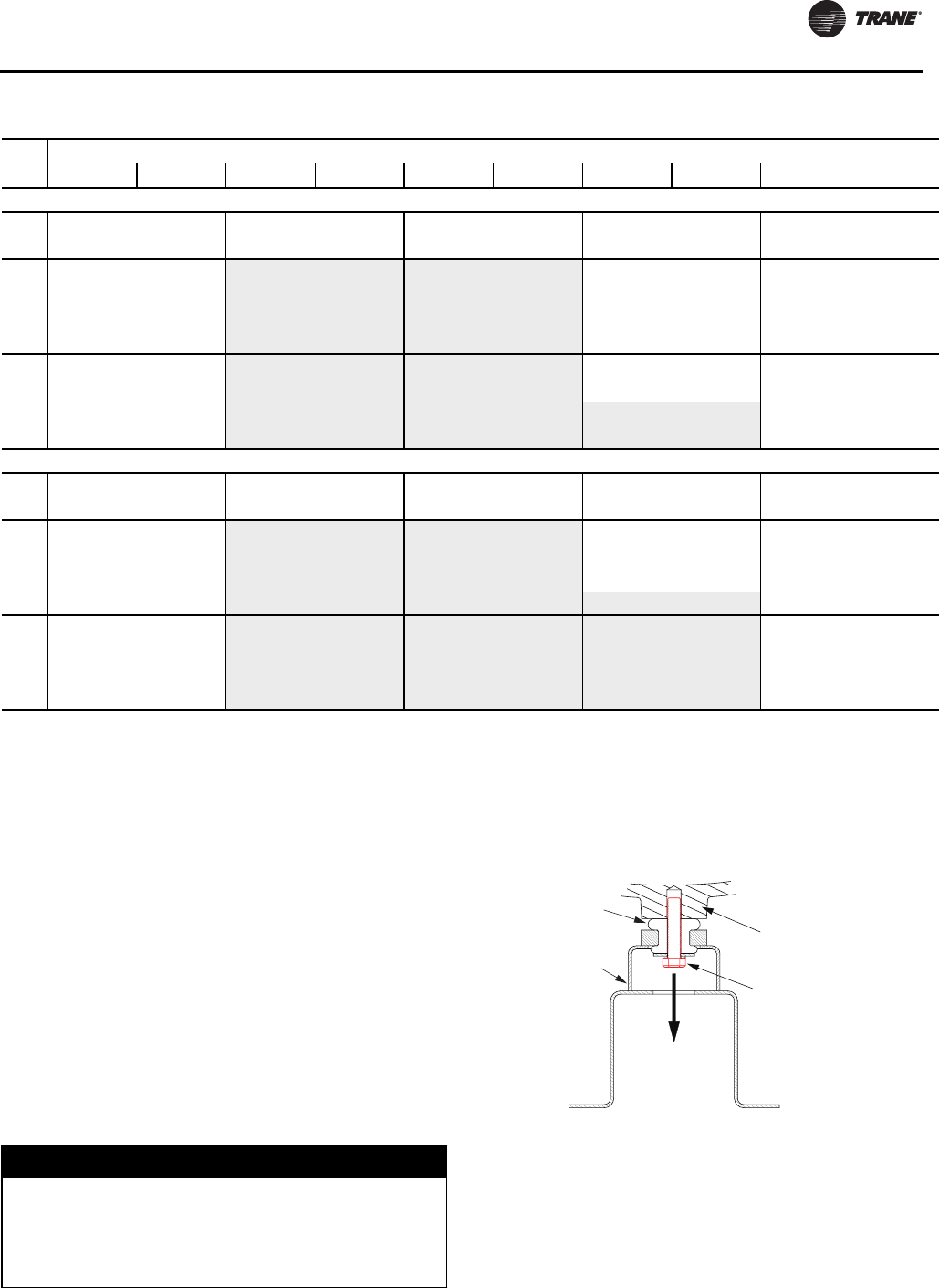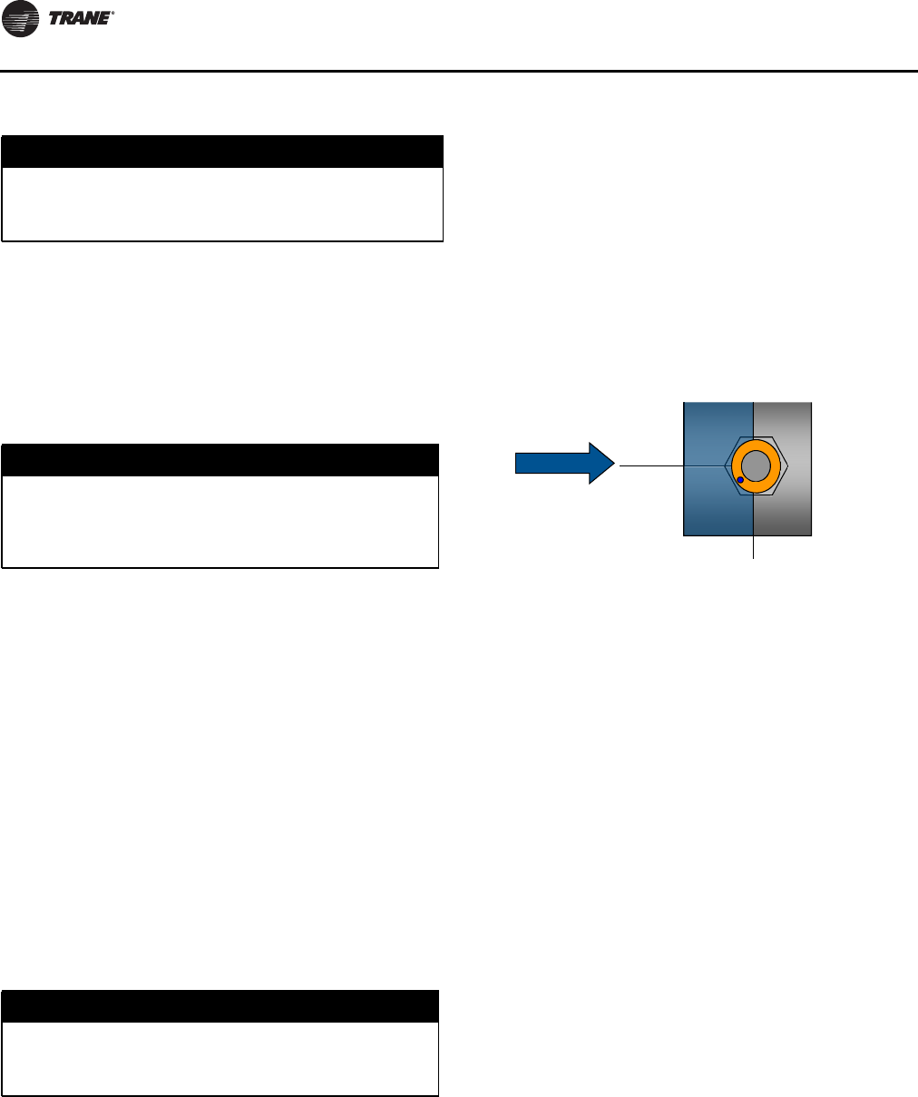 If unit has nitrogen charge (model number digit 15 = 2), contactTrane Service for unit charging prior to start-up.