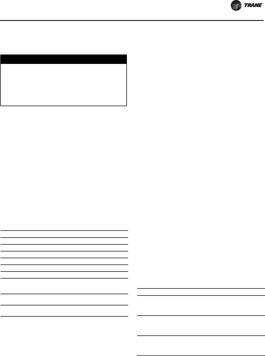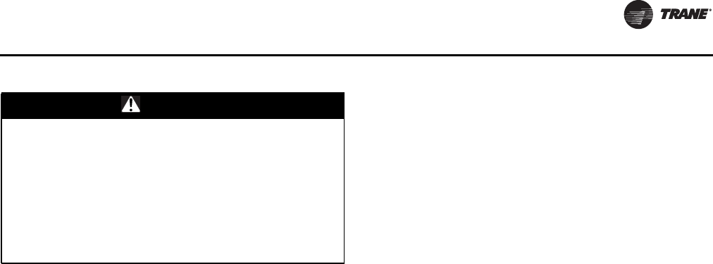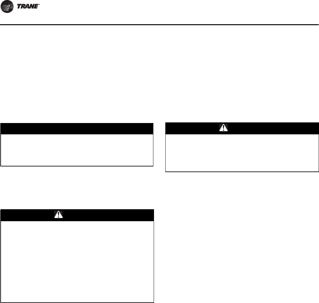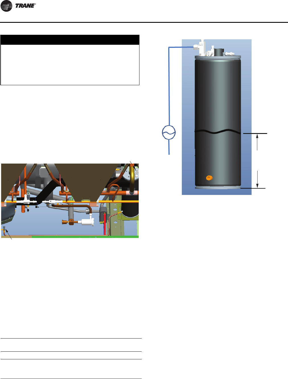 If unit has nitrogen charge (model number digit 15 = 2), contactTrane Service for unit charging prior to start-up.
