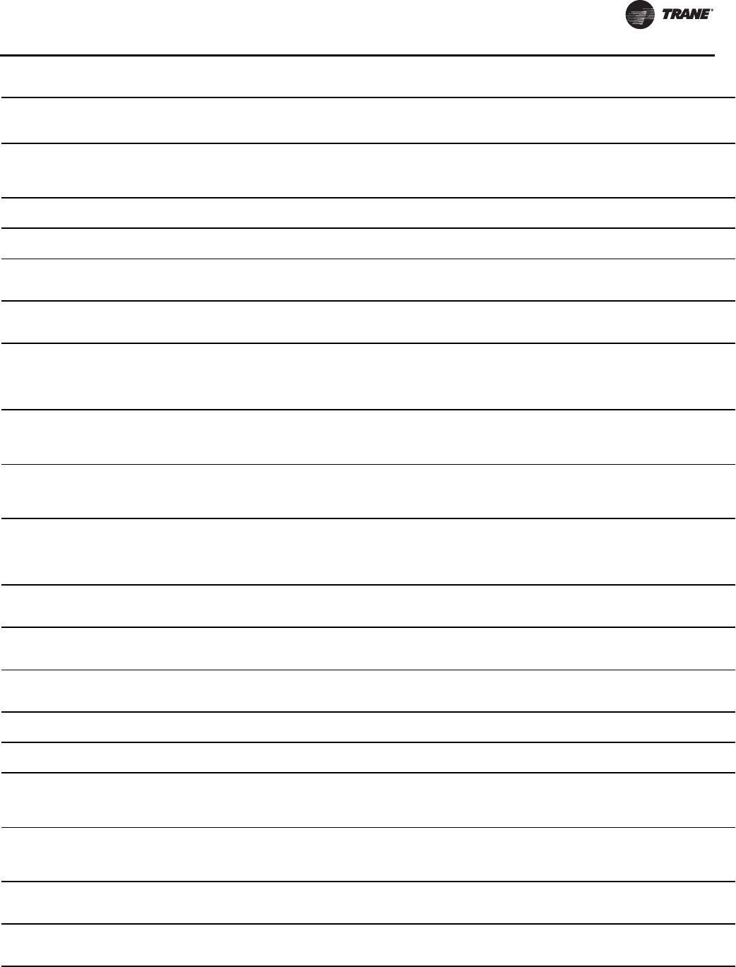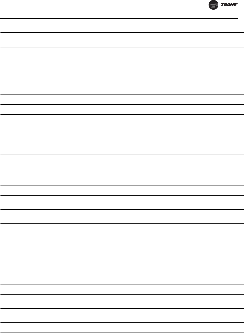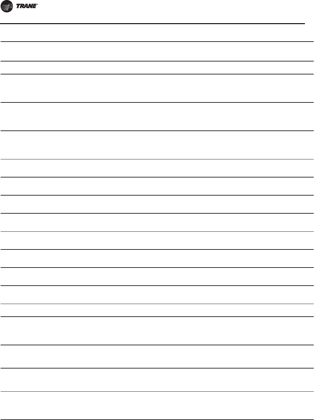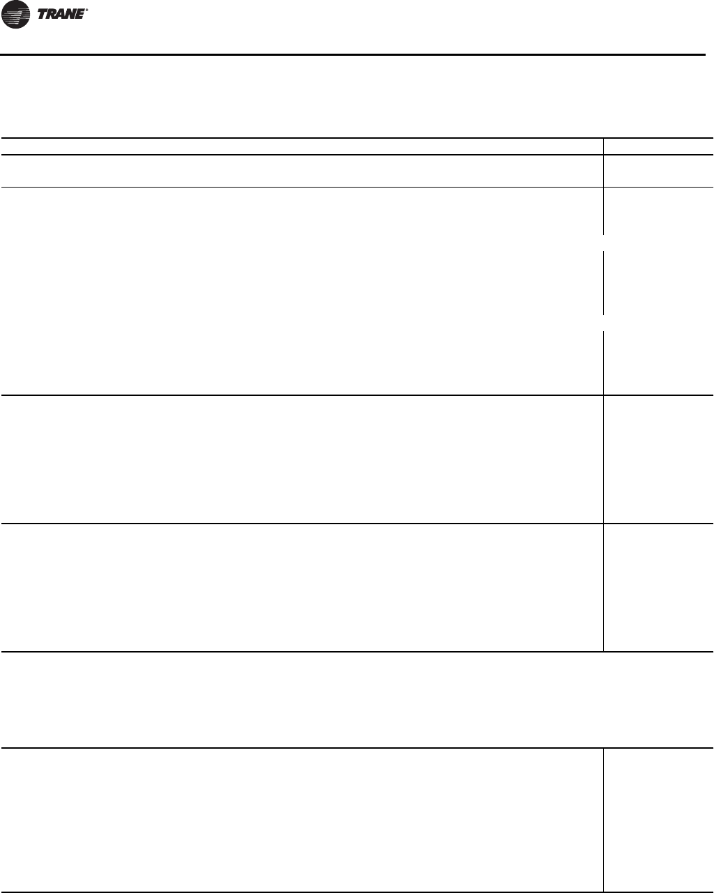 Note: A copy of this completed from must be submitted to theTrane Service Office that will be responsible for start-up of chiller.