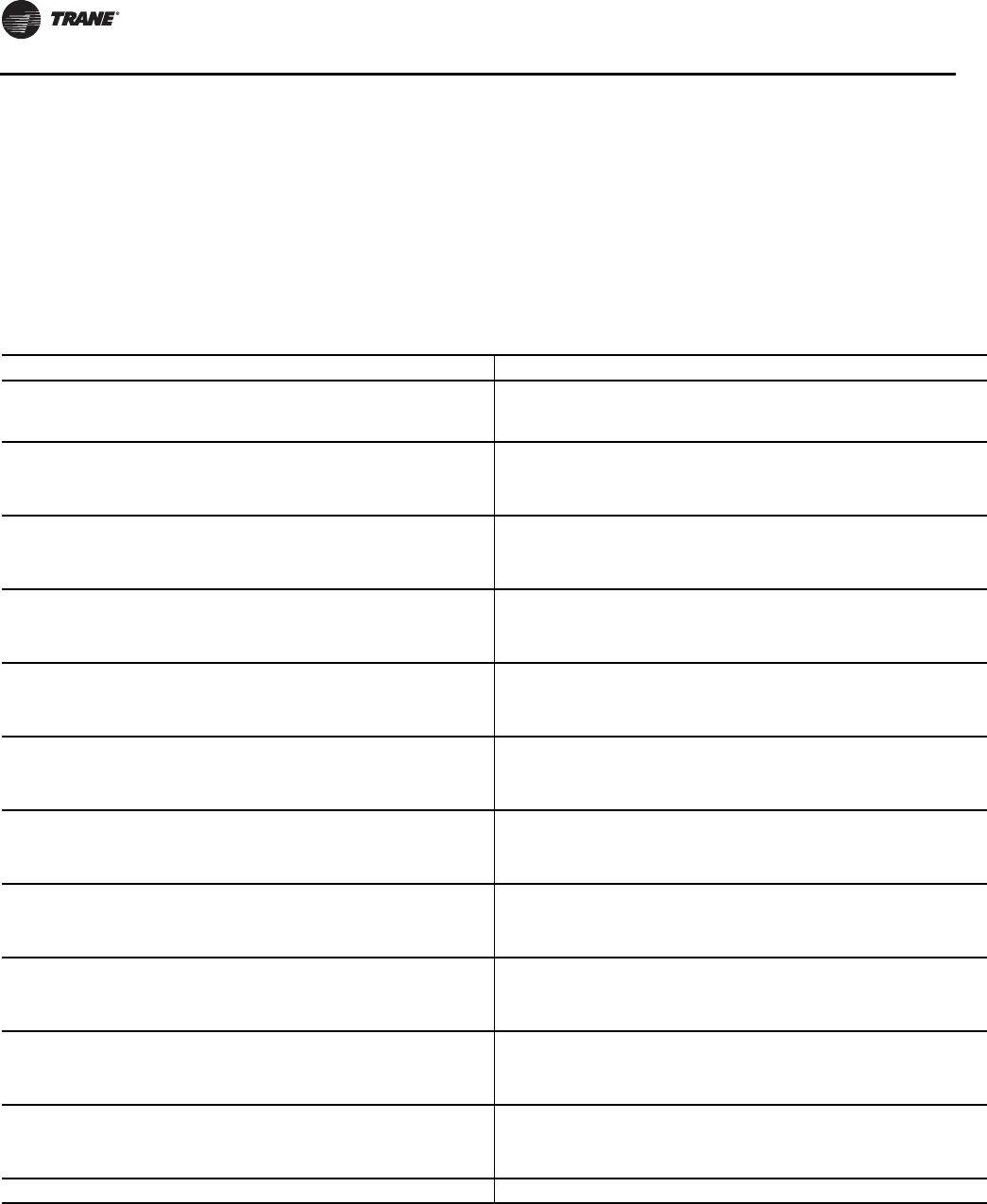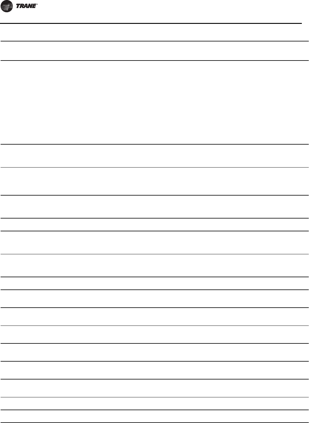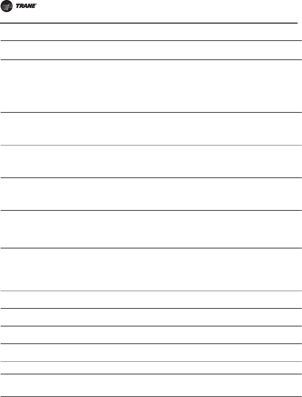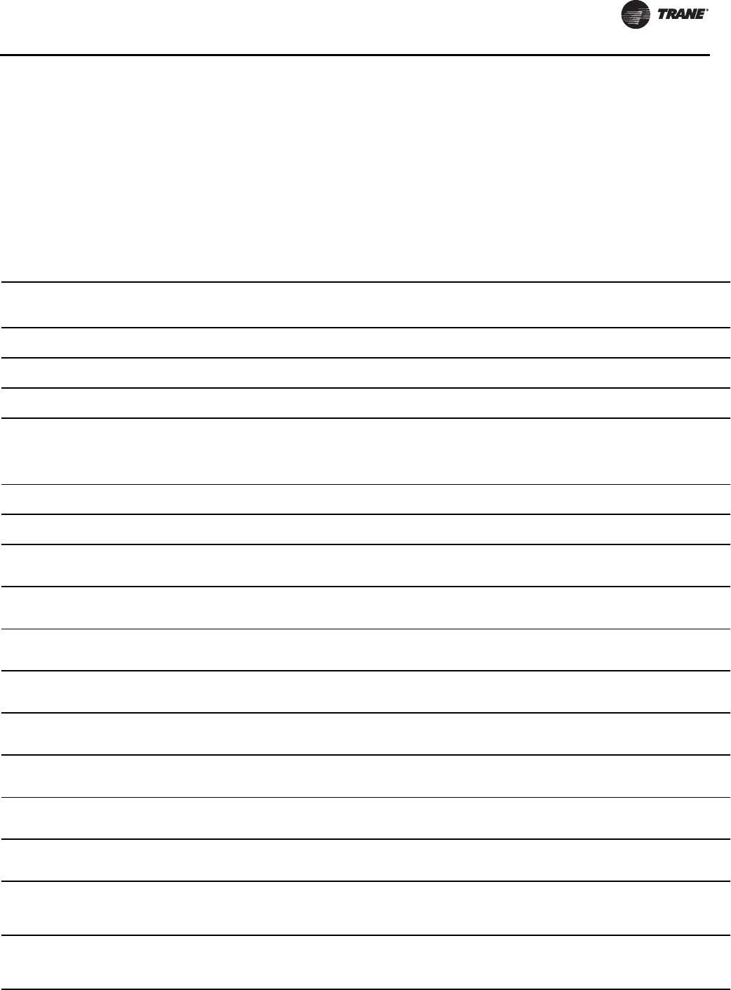 Note: A copy of this completed from must be submitted to theTrane Service Office that will be responsible for start-up of chiller.