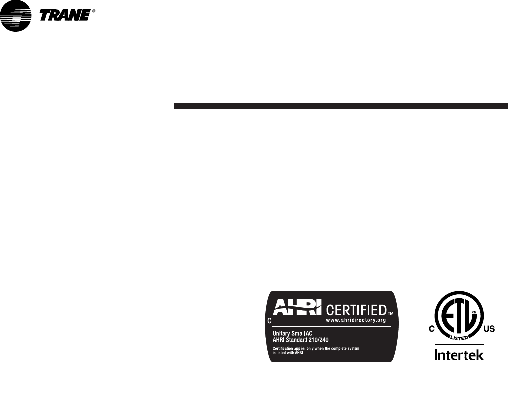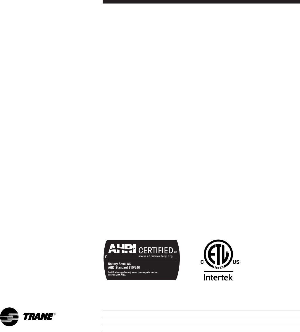 Trane Fan 4Ttb4 Users Manual 22 1833 09 02/01/2012 Split System Cooling Product Data XB14 1 1/2 5 Tons S (018E 061E).