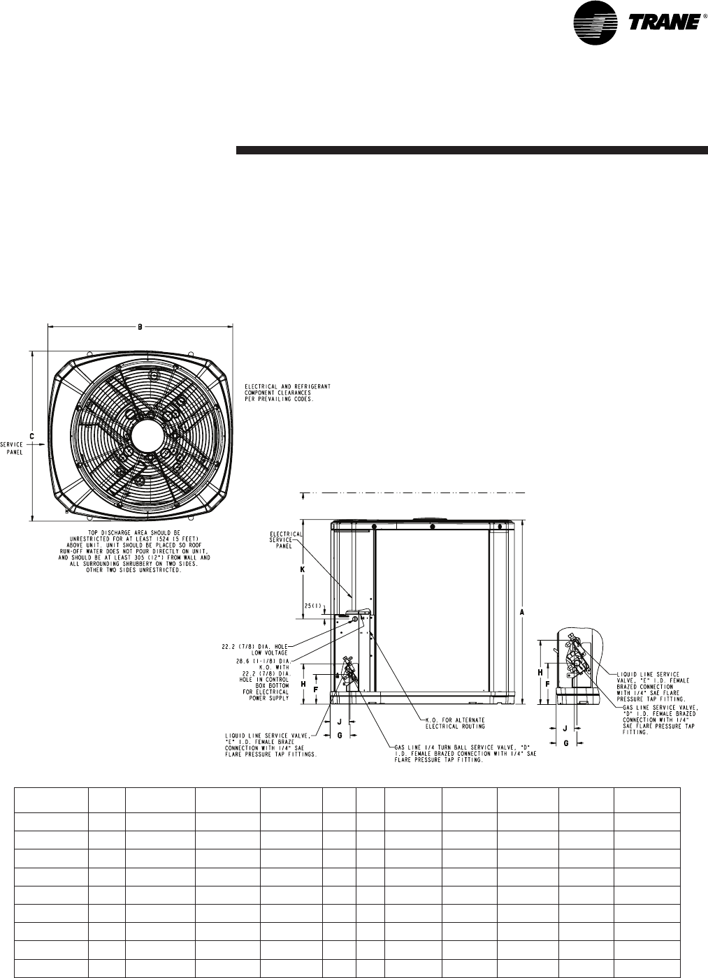 Model No. 1 4TTB4018E1 4TTB4024E1 4TTB4030E1 4TTB4036E1