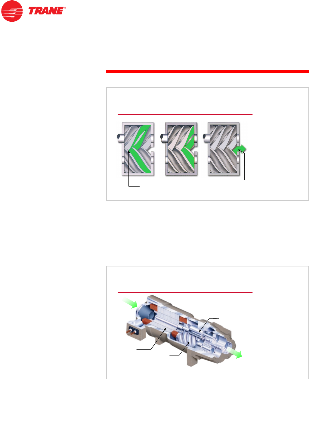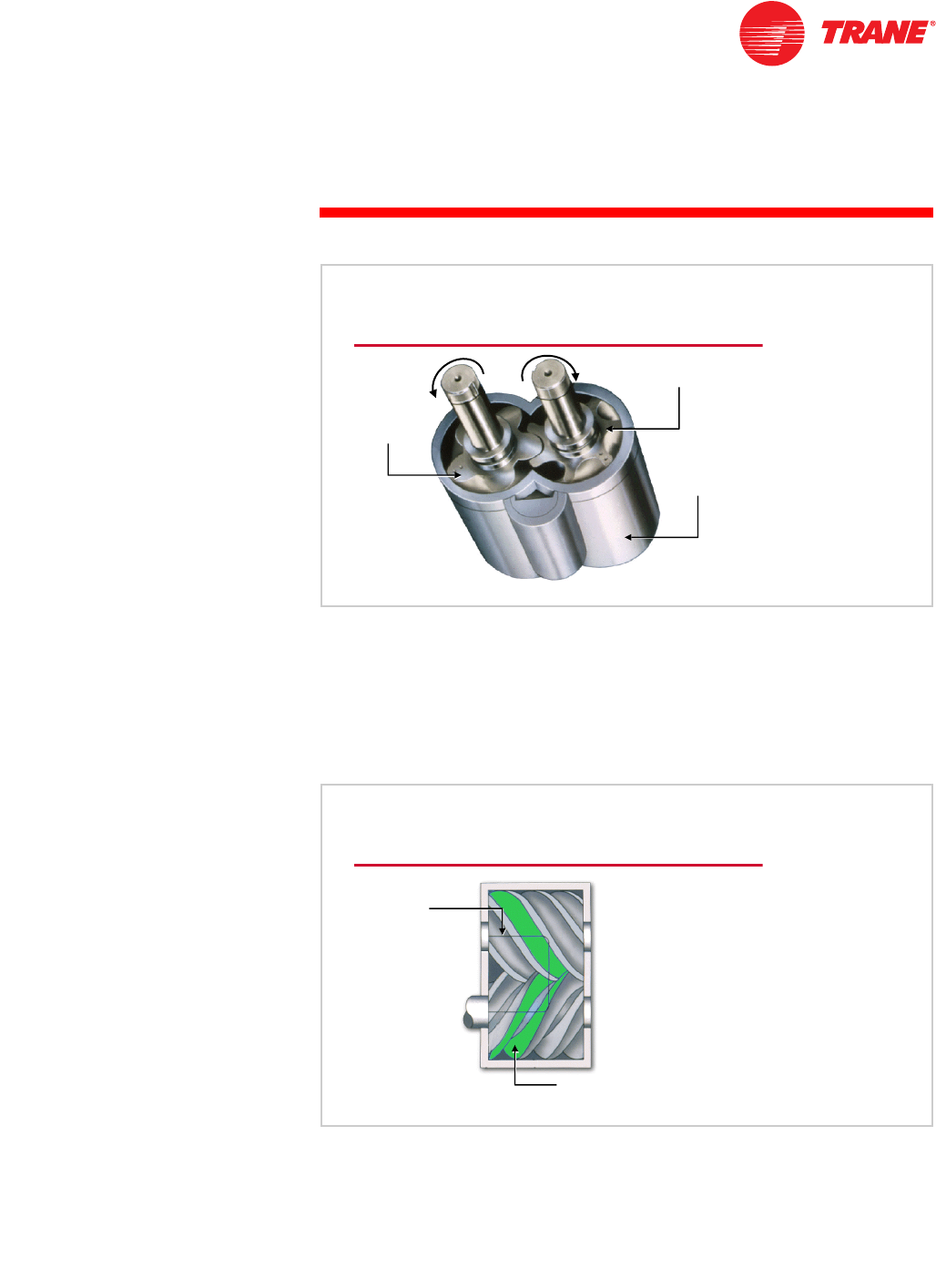 refrigerant vapor. The male and female rotors mesh together, forming pockets