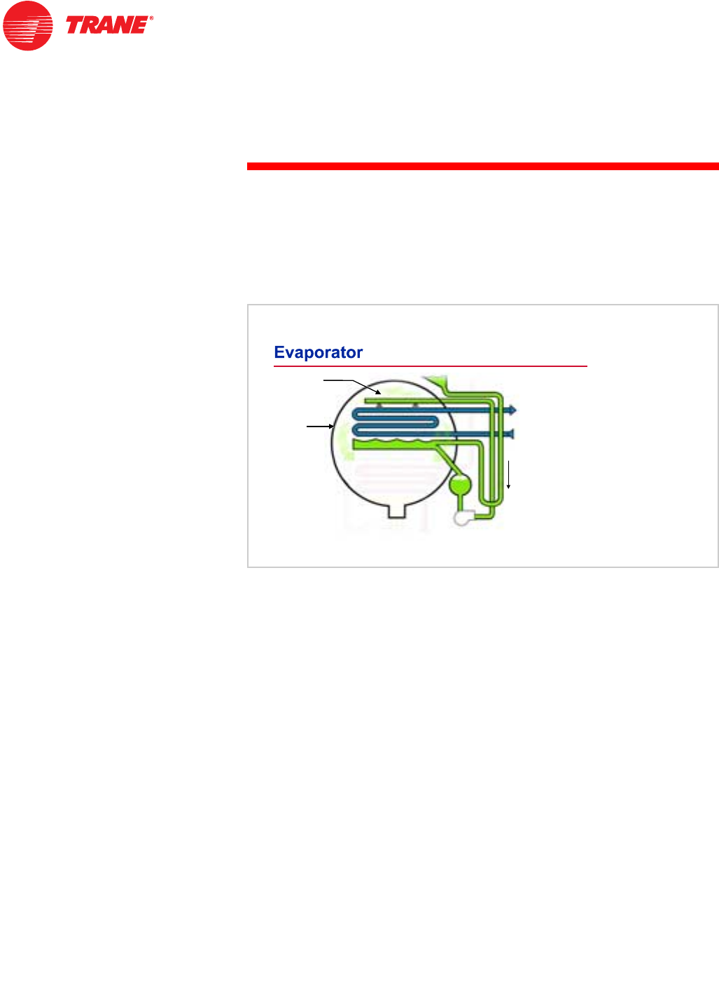 liquid refrigerant absorbs heat from water (from the building system), causing
