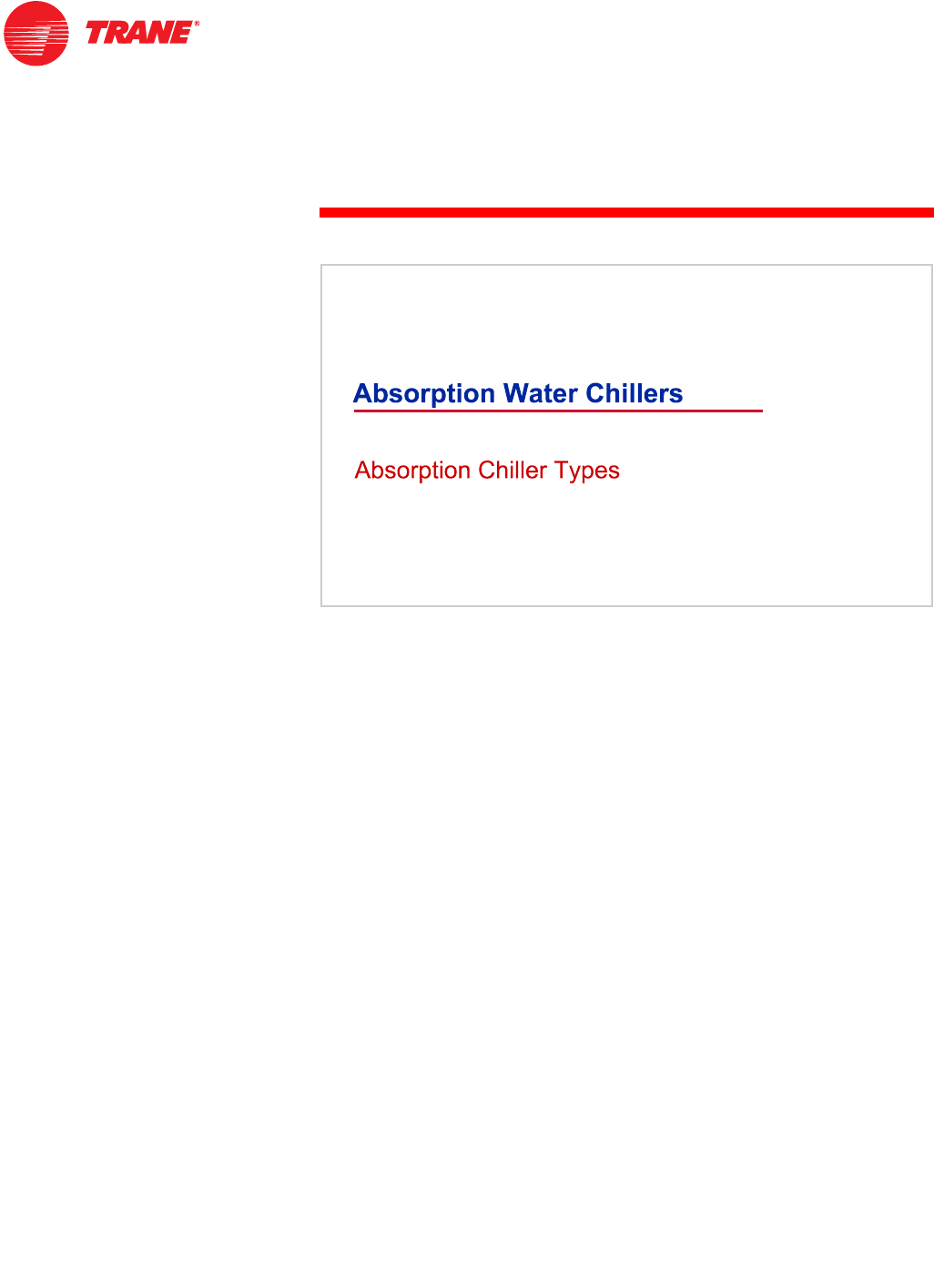 and sizes of absorption water chillers, using water as the refrigerant and lithium