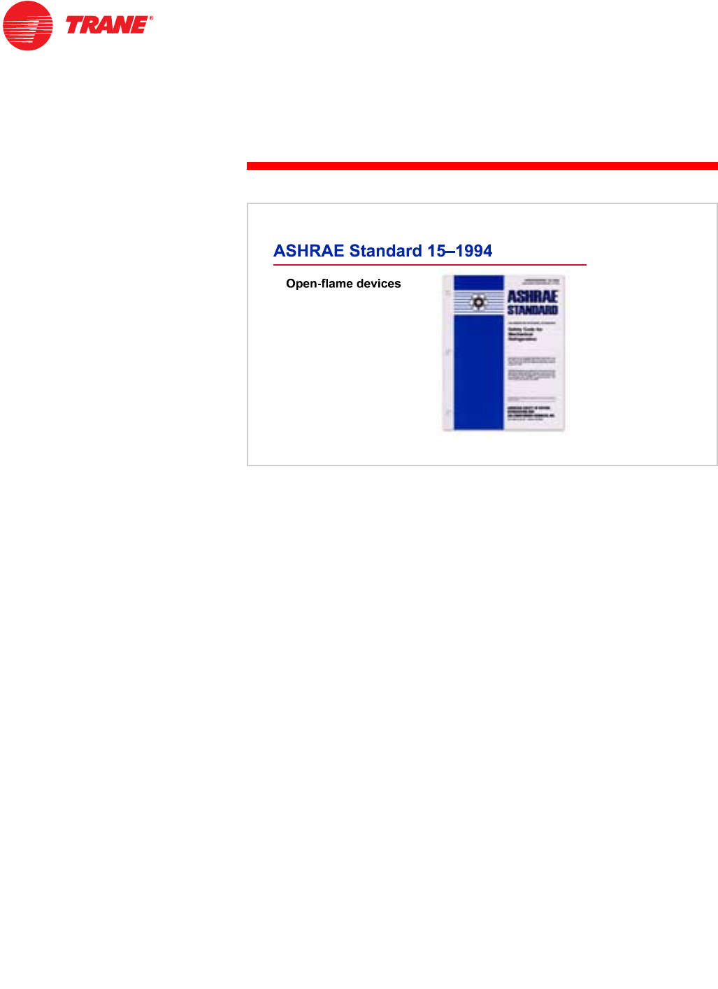 ASHRAE Standard 15 A publication, titled “Safety Code for Mechanical