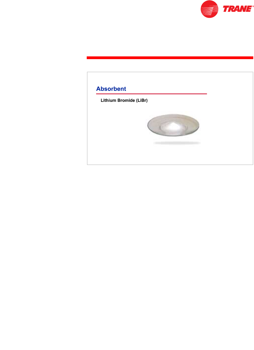 absorption water chillers, the absorbent is commonly lithium bromide.