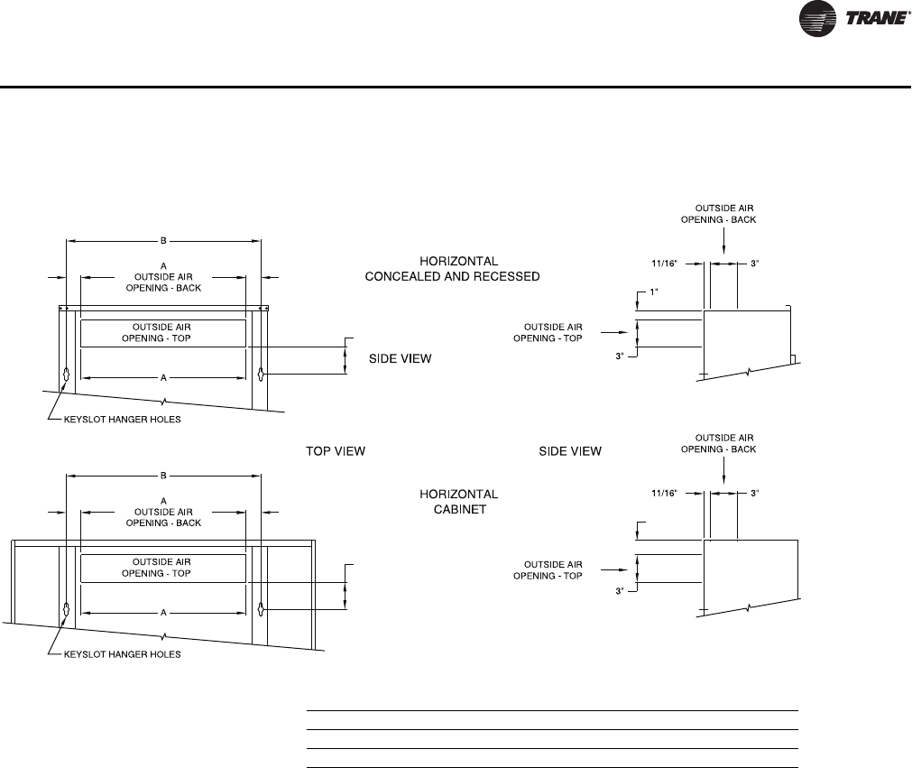 - Fresh Air Opening Locations-Horizontal Units Models C, D, and E