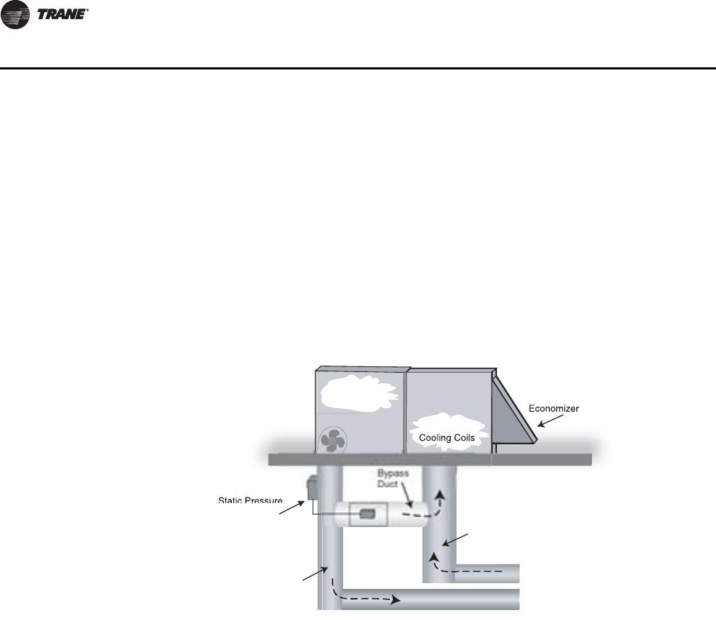 3) A communicating bypass controller allows duct pressure and duct temperature to communicate