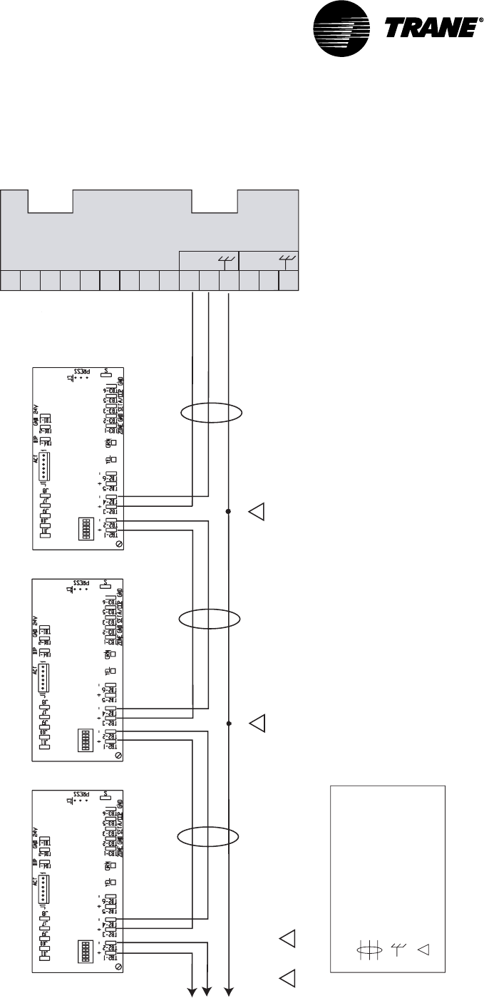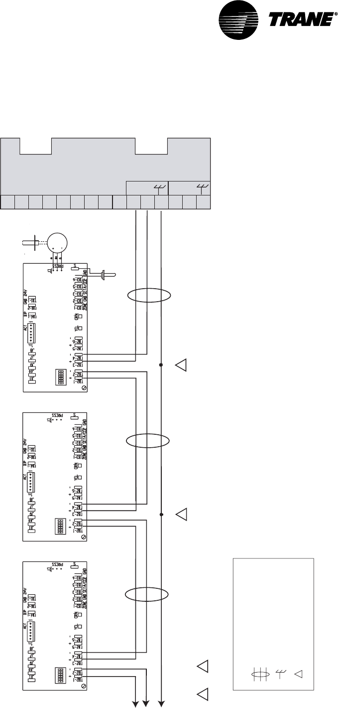 oVariTrac Central Control Panel communication link wiring to VAV UCMs