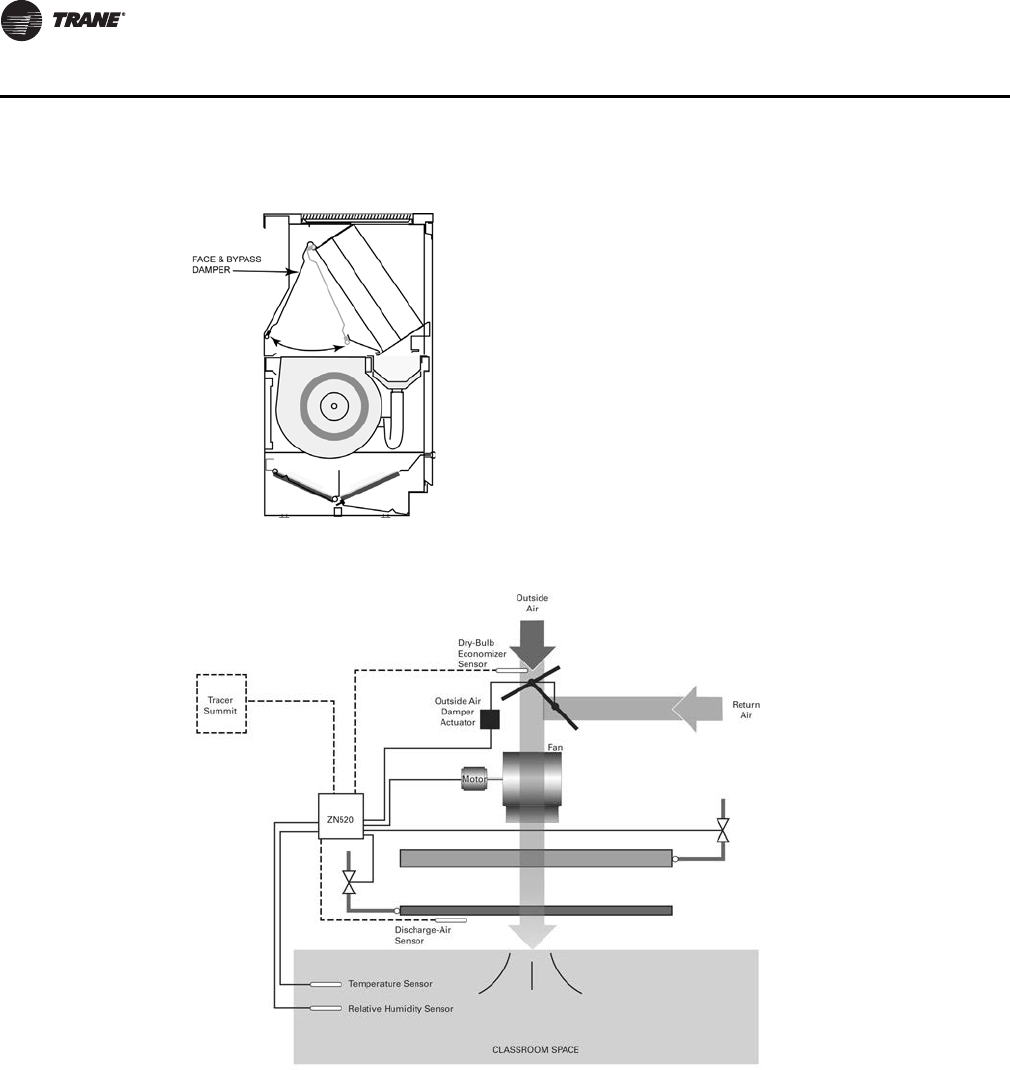 The face and bypass damper control is utilized for economizing and dehumidification of the