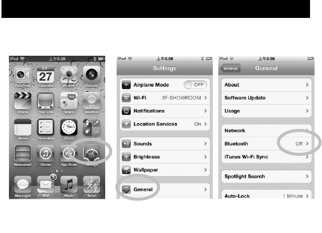 1. Go to Bluetooth manager of your iPad/iPhone/iPod touch by the following steps