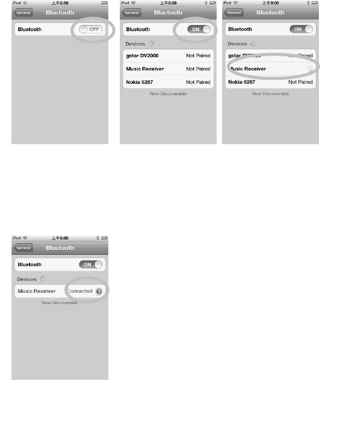open the Bluetooth manager and tap on the “Music Receiver”, then you do not need to