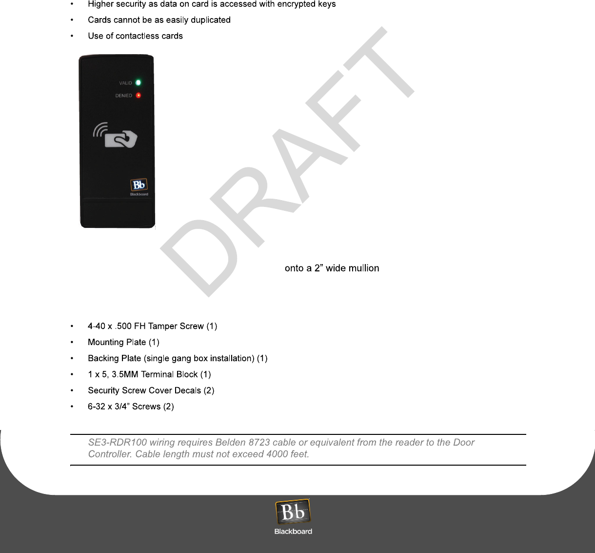 Blackboard Inc. Card Reader 1291 SE3RDR100 Install DRAFTf