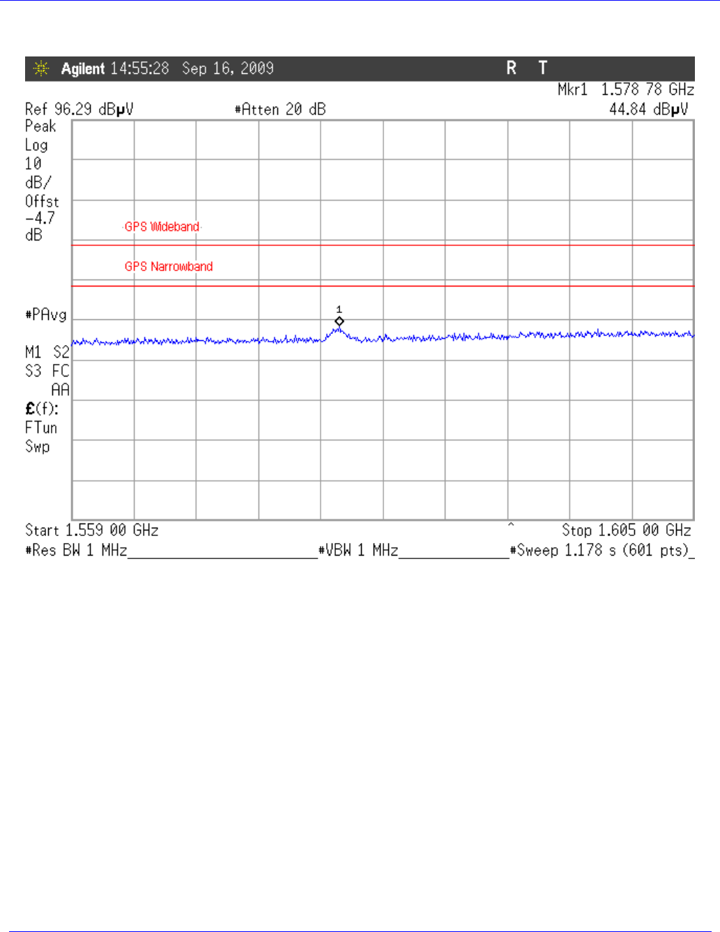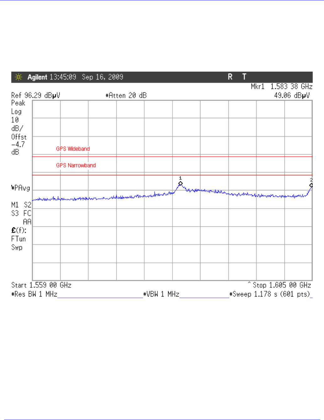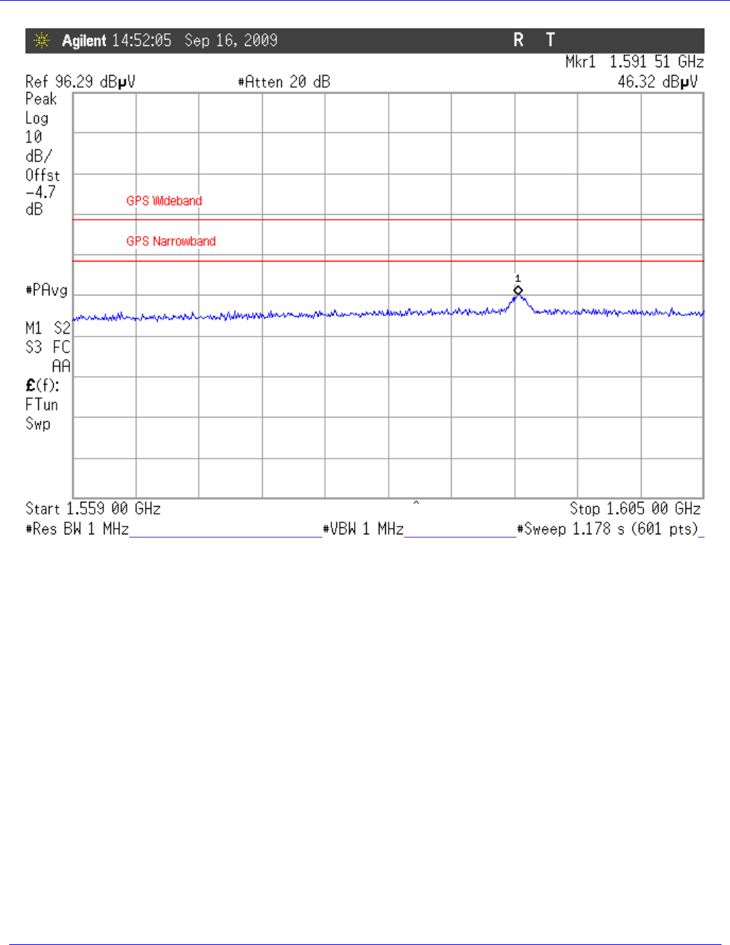 Figure 21: GPS Band Emissions High Channel, 1559 – 1605MHz Horizontal Antenna Polarity