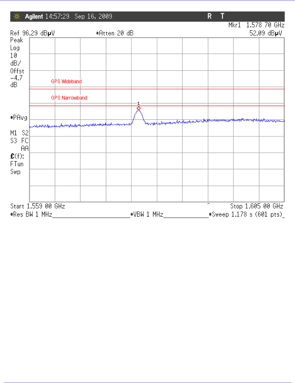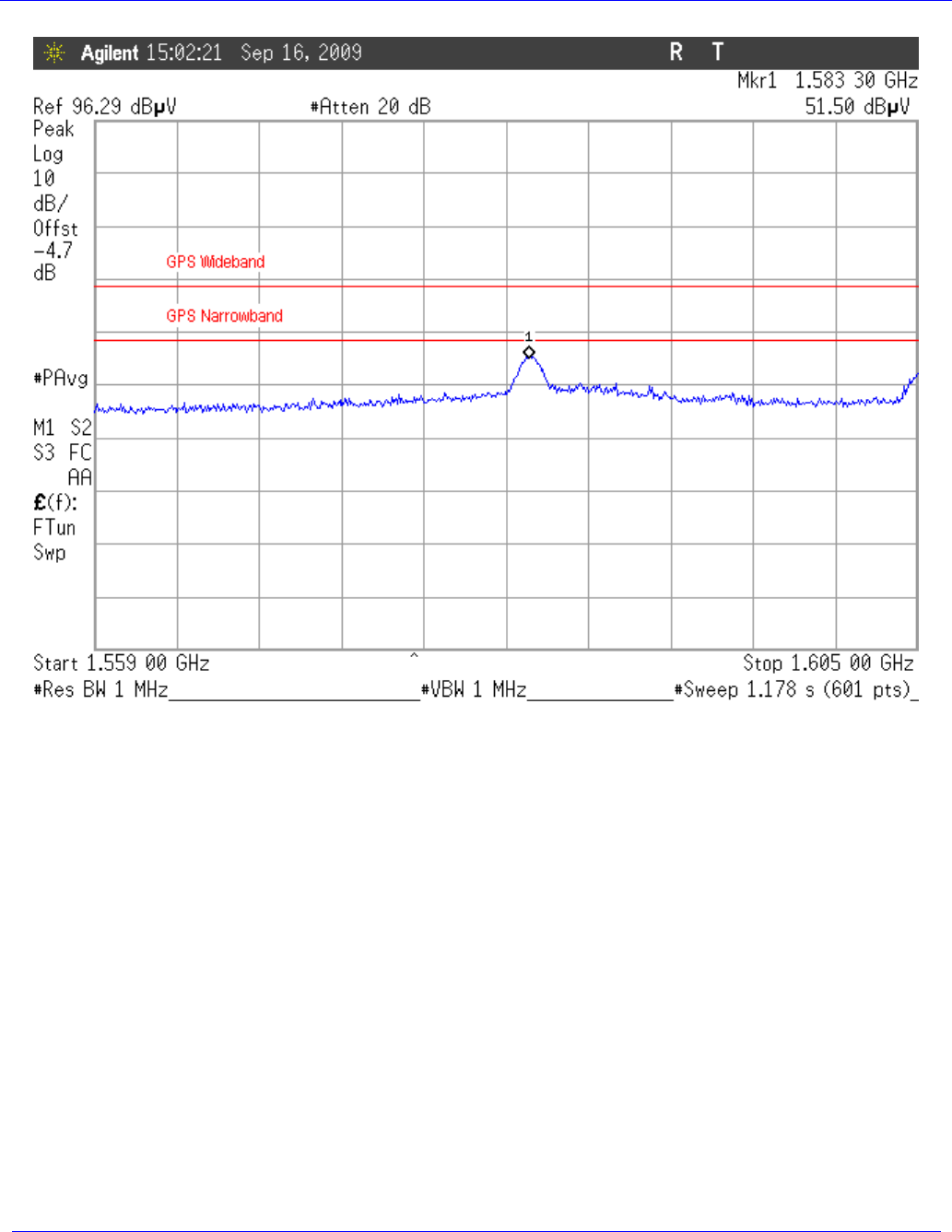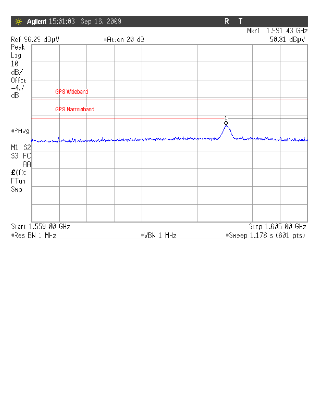 Figure 21: GPS Band Emissions High Channel, 1559 – 1605MHz Horizontal Antenna Polarity