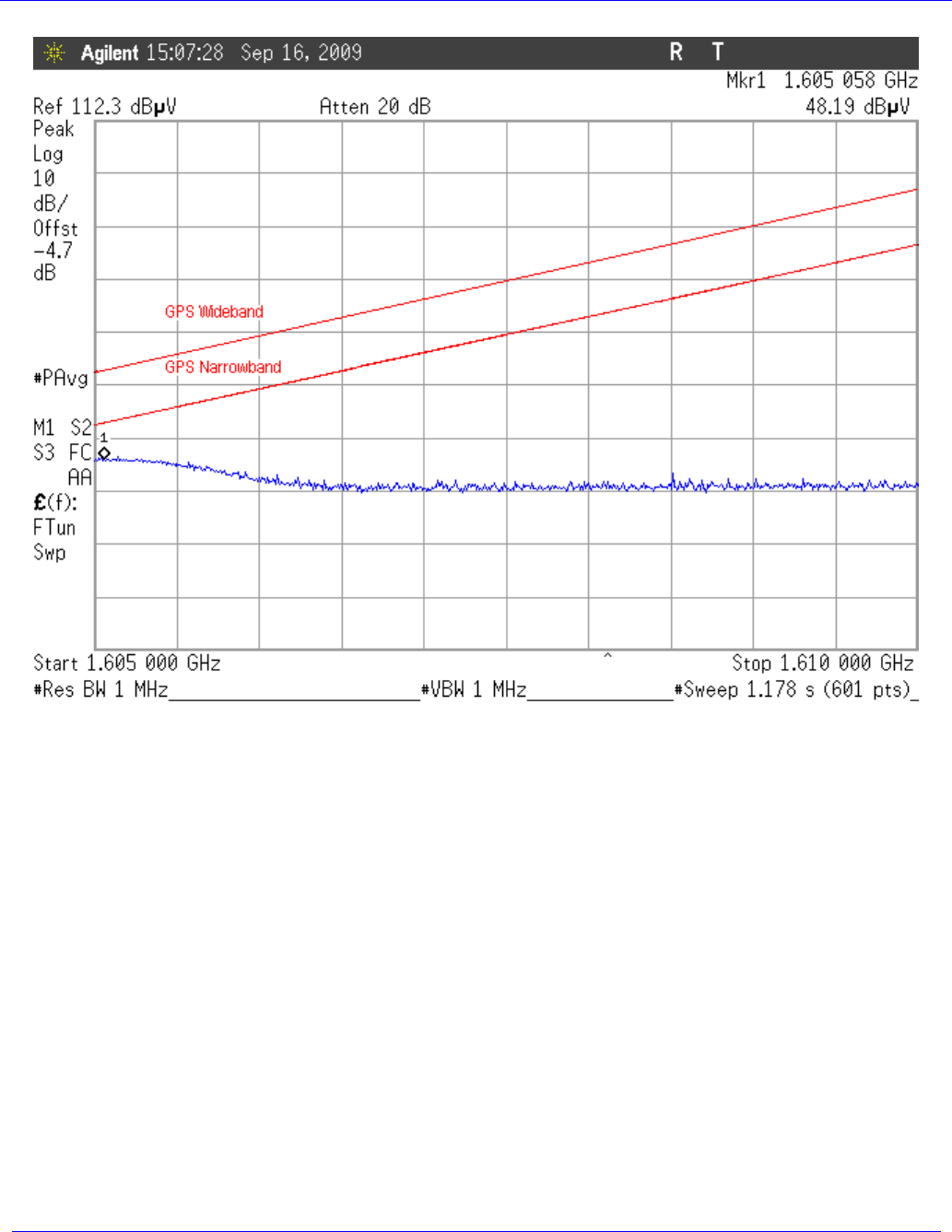 Figure 20: GPS Band Emissions High Channel, 1605 – 1610MHz Vertical Antenna Polarity