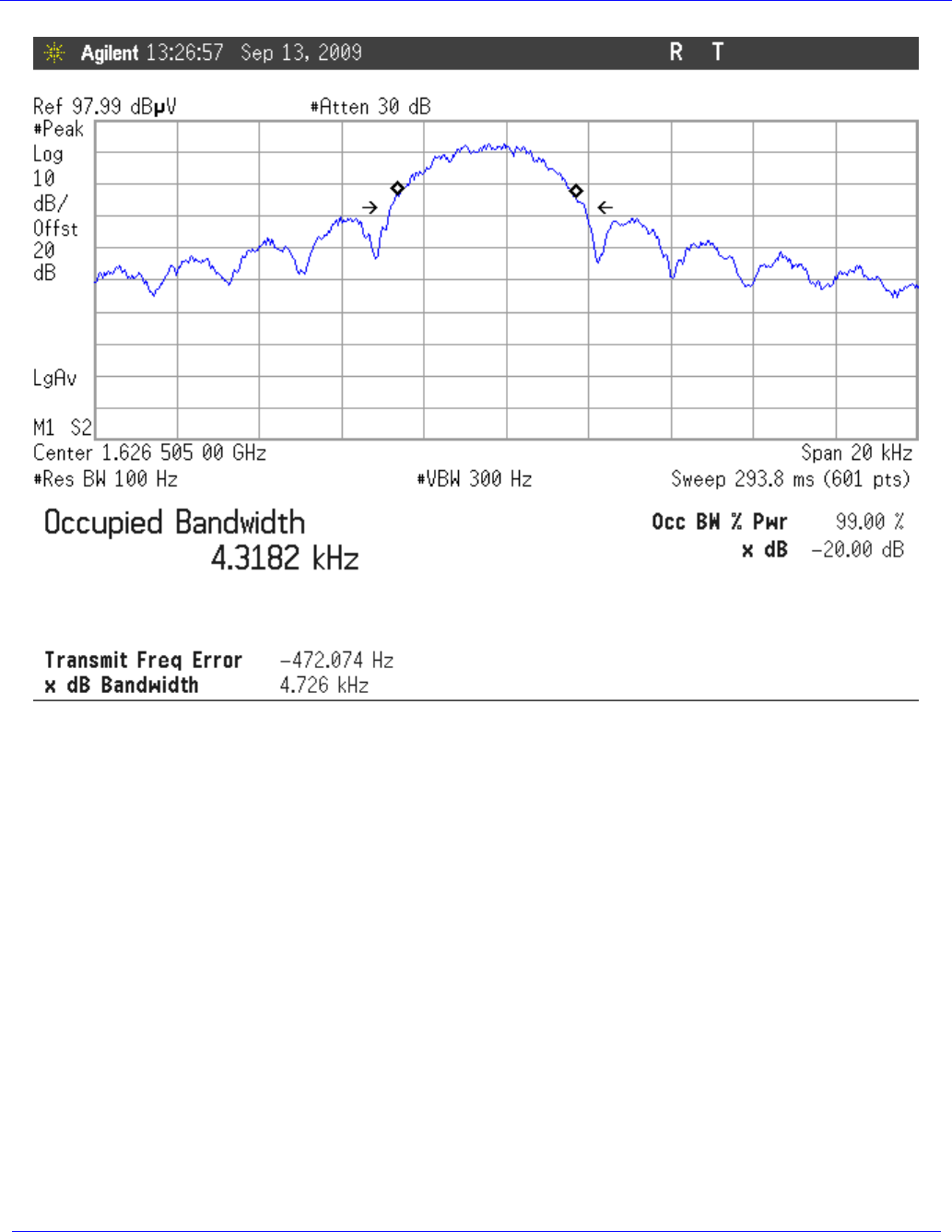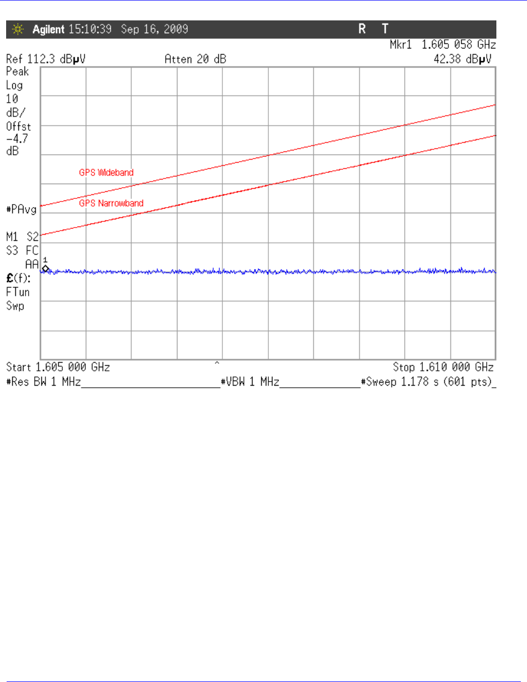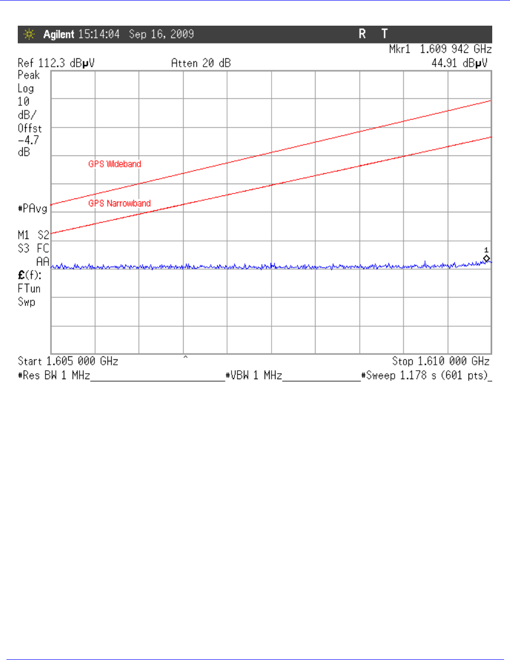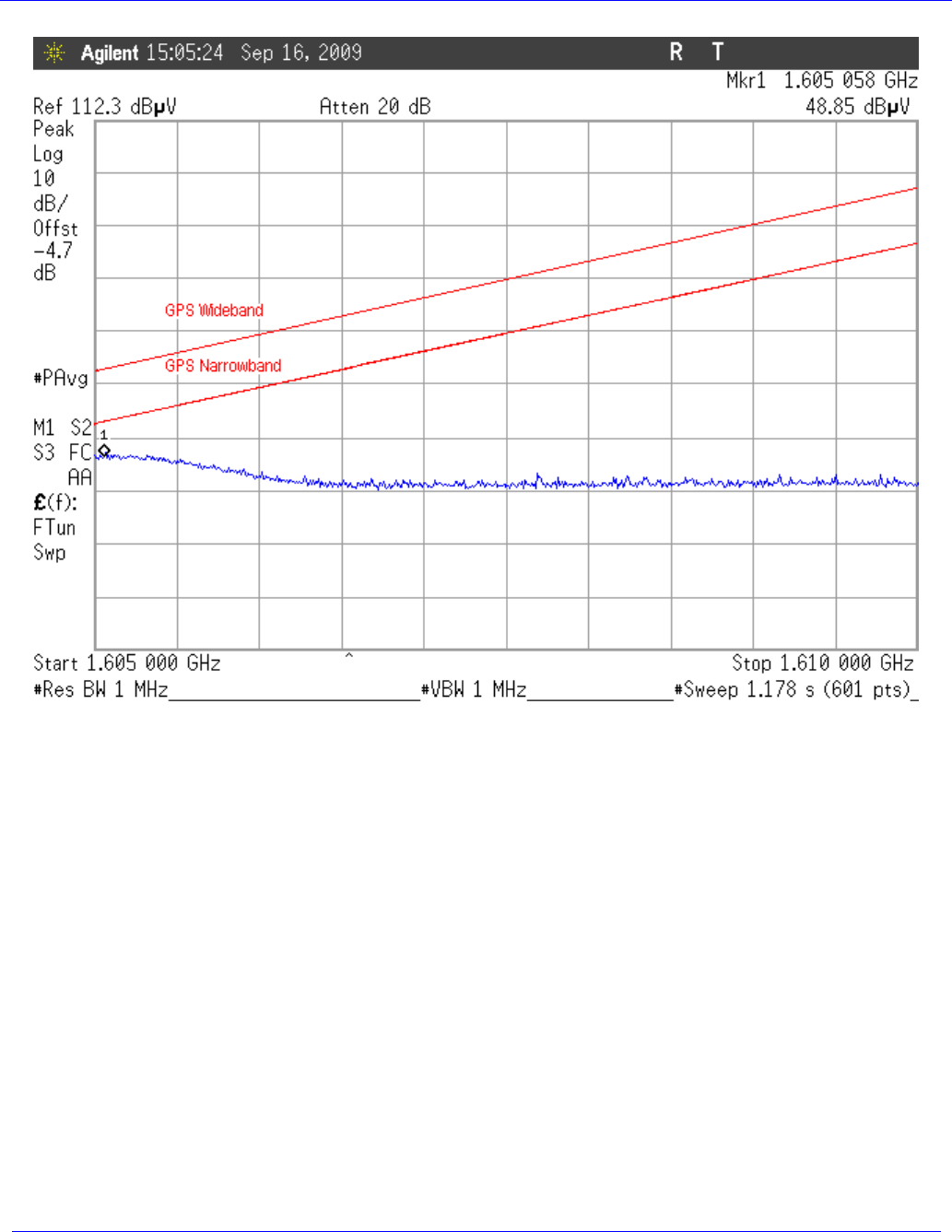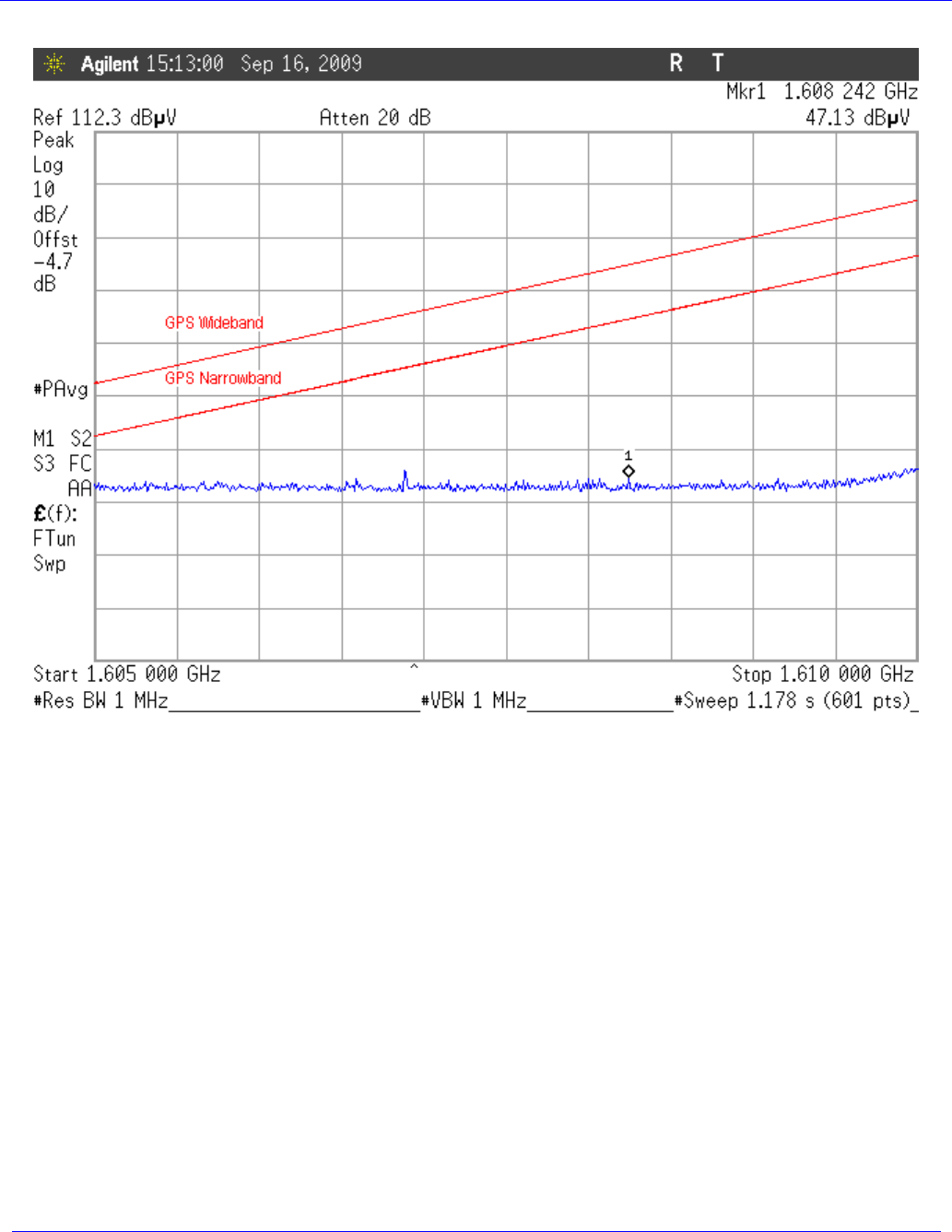 Figure 22: GPS Band Emissions High Channel, 1605 – 1610MHz Horizontal Antenna Polarity
