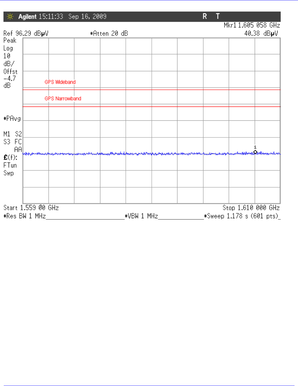 Figure 13: GPS Band Emissions Low Channel, 1605 – 1610MHz Horizontal Antenna Polarity