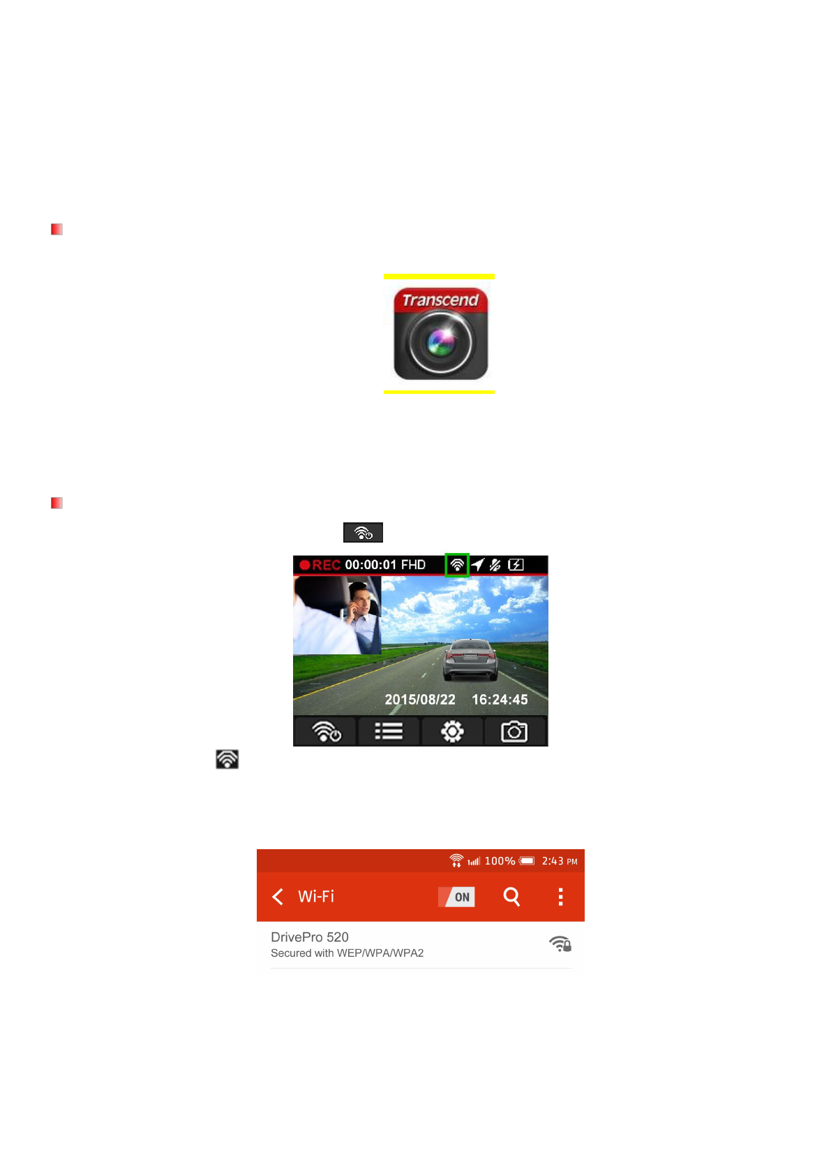 Only use the car adapter provided by Transcend. Other car adapters may not compatible with the