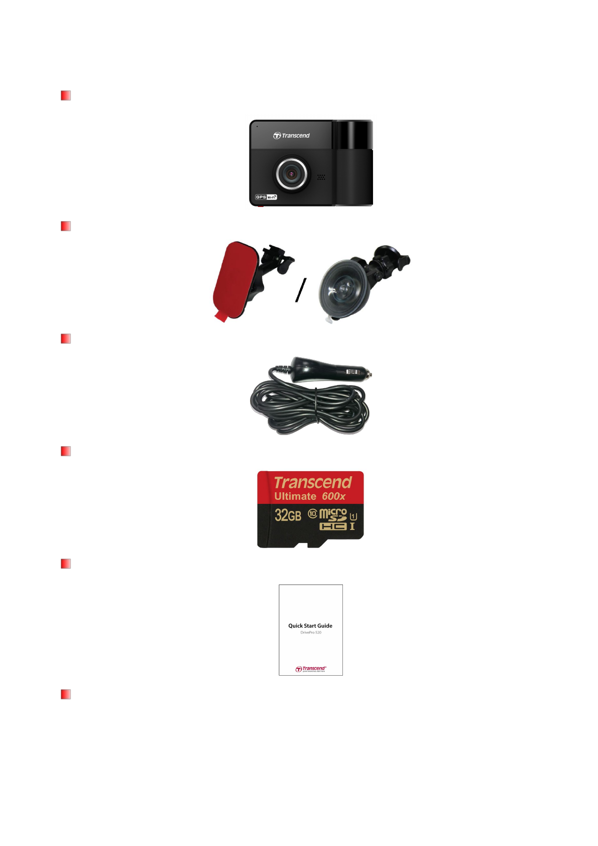 The DrivePro Car Video Recorder package includes the following items: