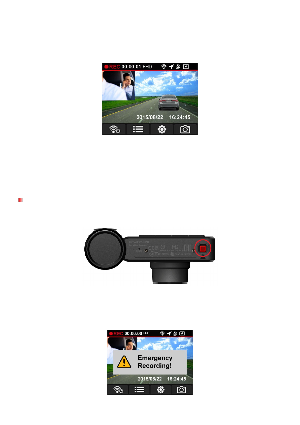 will be automatically turned on in low light conditions, allowing recording at night. The DrivePro 520’s built-in