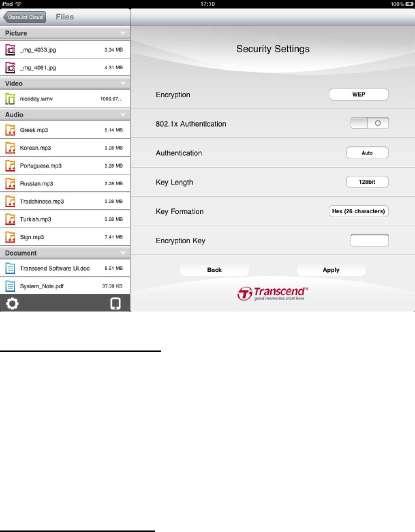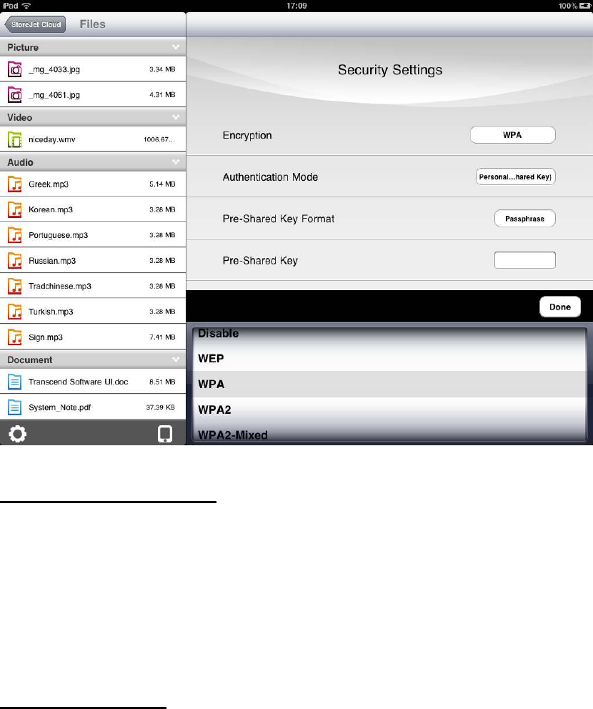 • Wi-Fi encryption by WEP/WPA/WPA2/WPA2-Mixed