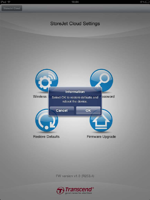 Cloud defaults. Press the reset button at the bottom of StoreJet Cloud