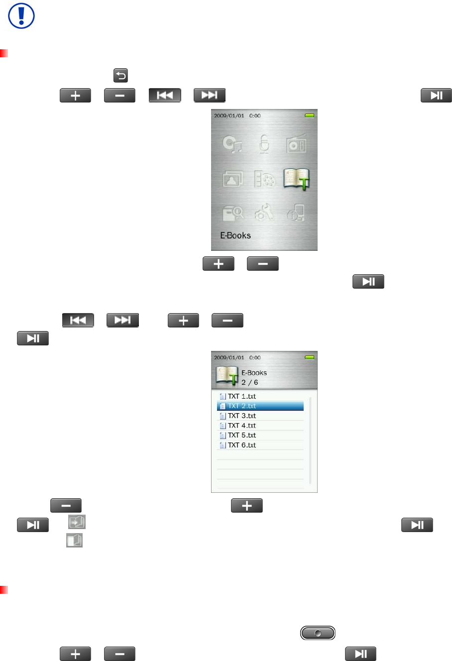 The MP860 only supports “.TXT” E-book files, please ensure that the E-book is saved in Unicode UTF-8 or